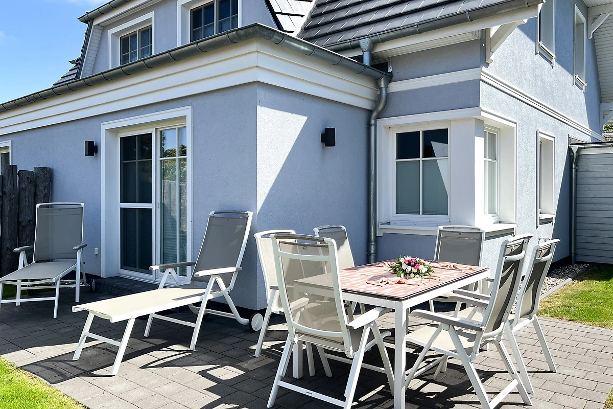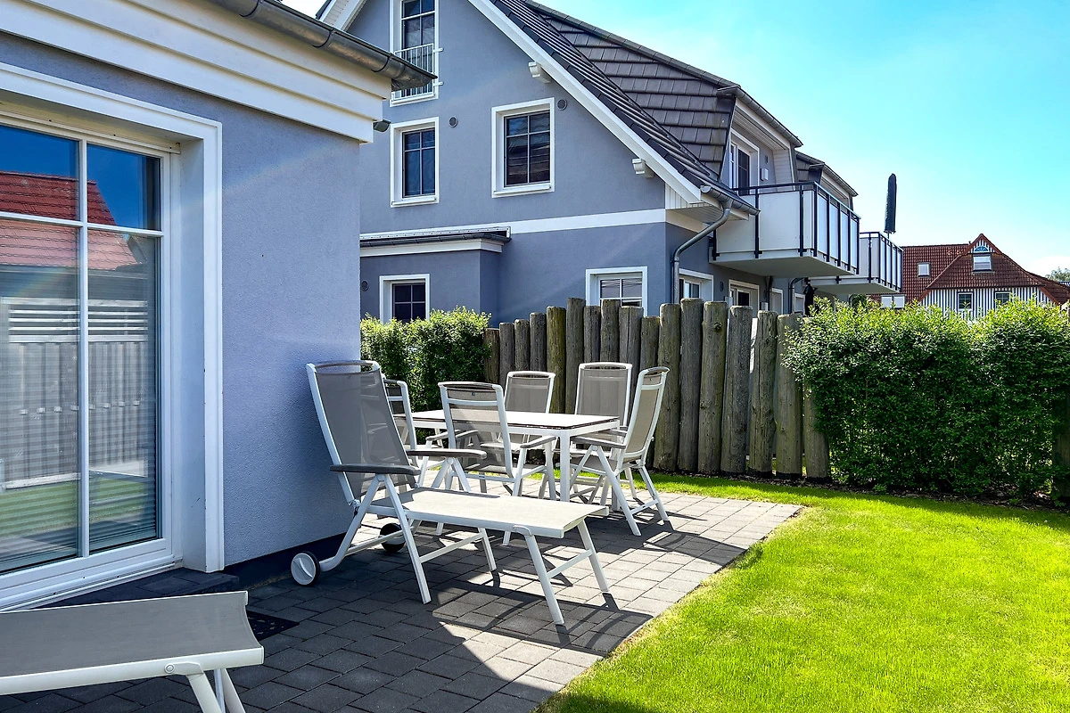 Sonnenterrasse und umzäunter Garten mit Grillmöglichkeit für gesellige Stunden im Freien