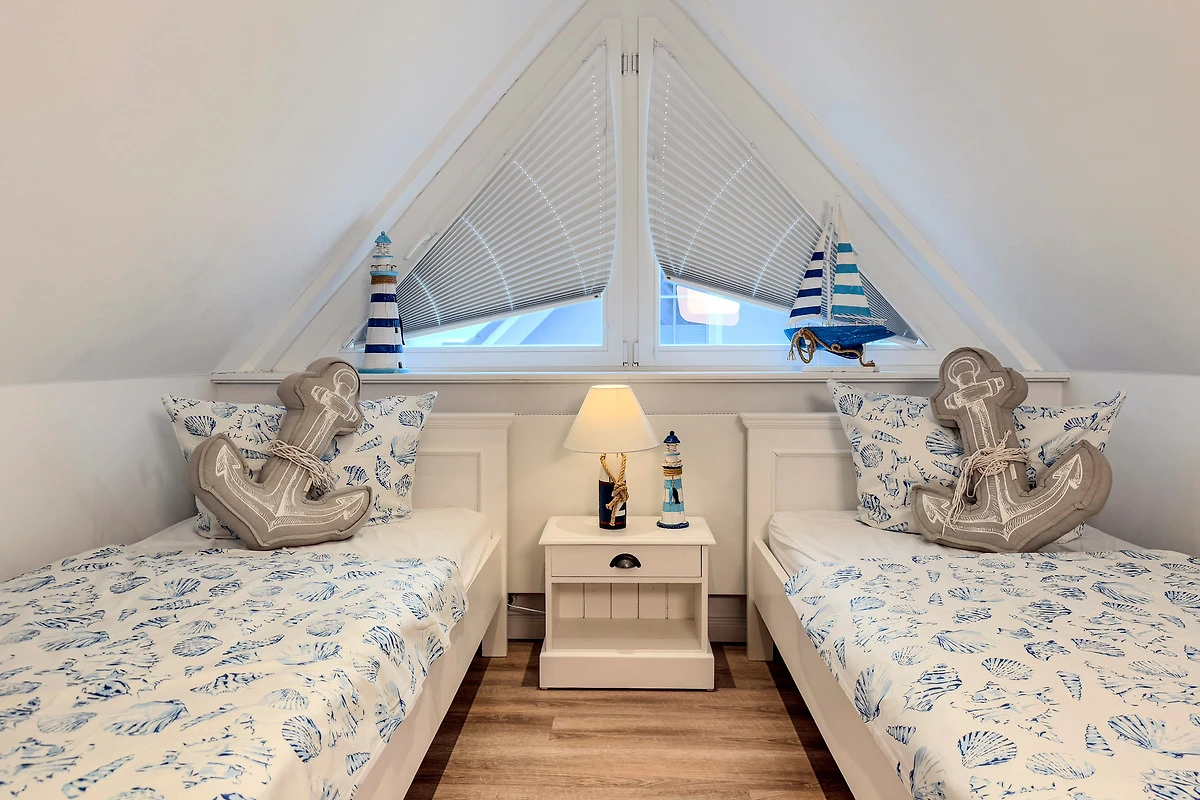 Drei komfortable Schlafzimmer mit Boxspring- und Einzelbetten für erholsamen Schlaf