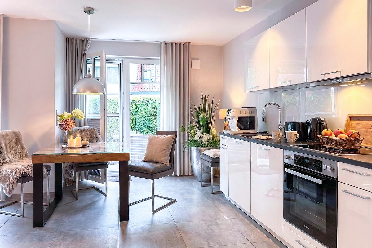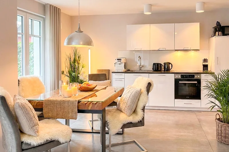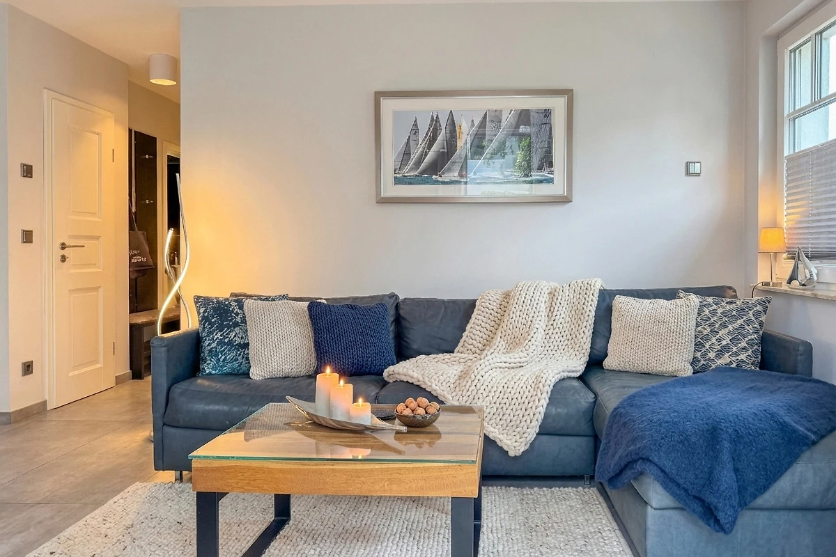 Die Ferienwohnung Meerle 2 empfängt Sie mit einer harmonischen Mischung aus stilvollem Design und gemütlicher Atmosphäre. Helle Farben, liebevolle Details und hochwertige Ausstattung schaffen ein Gefühl von Zuhause – nur eben am Meer. Der offene Wohnbereich lädt zum Entspannen ein, ob bei einem Filmabend, einer guten Tasse Kaffee oder einfach beim Nichtstun.