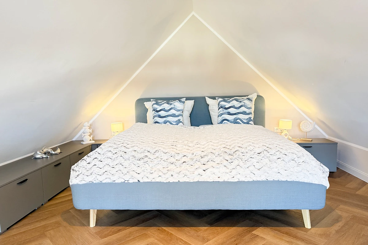 Schlafzimmer: Zwei gemütliche Schlafzimmer, eines mit Doppelbett (160 x 200 cm), das andere mit Doppelbett (180 x 200 cm)