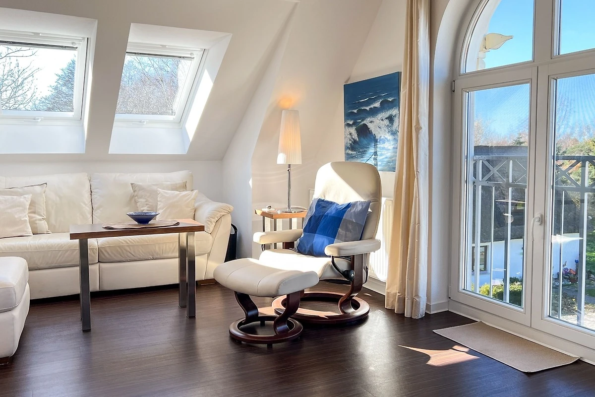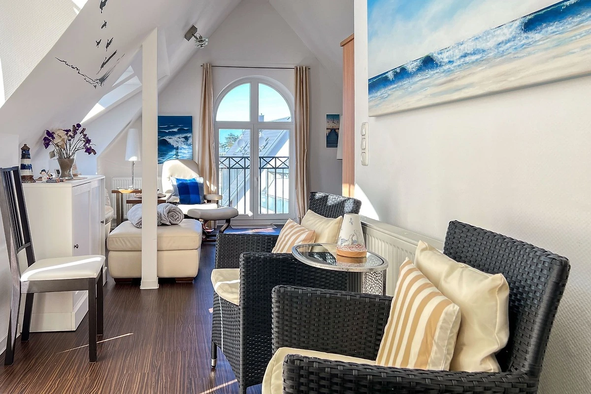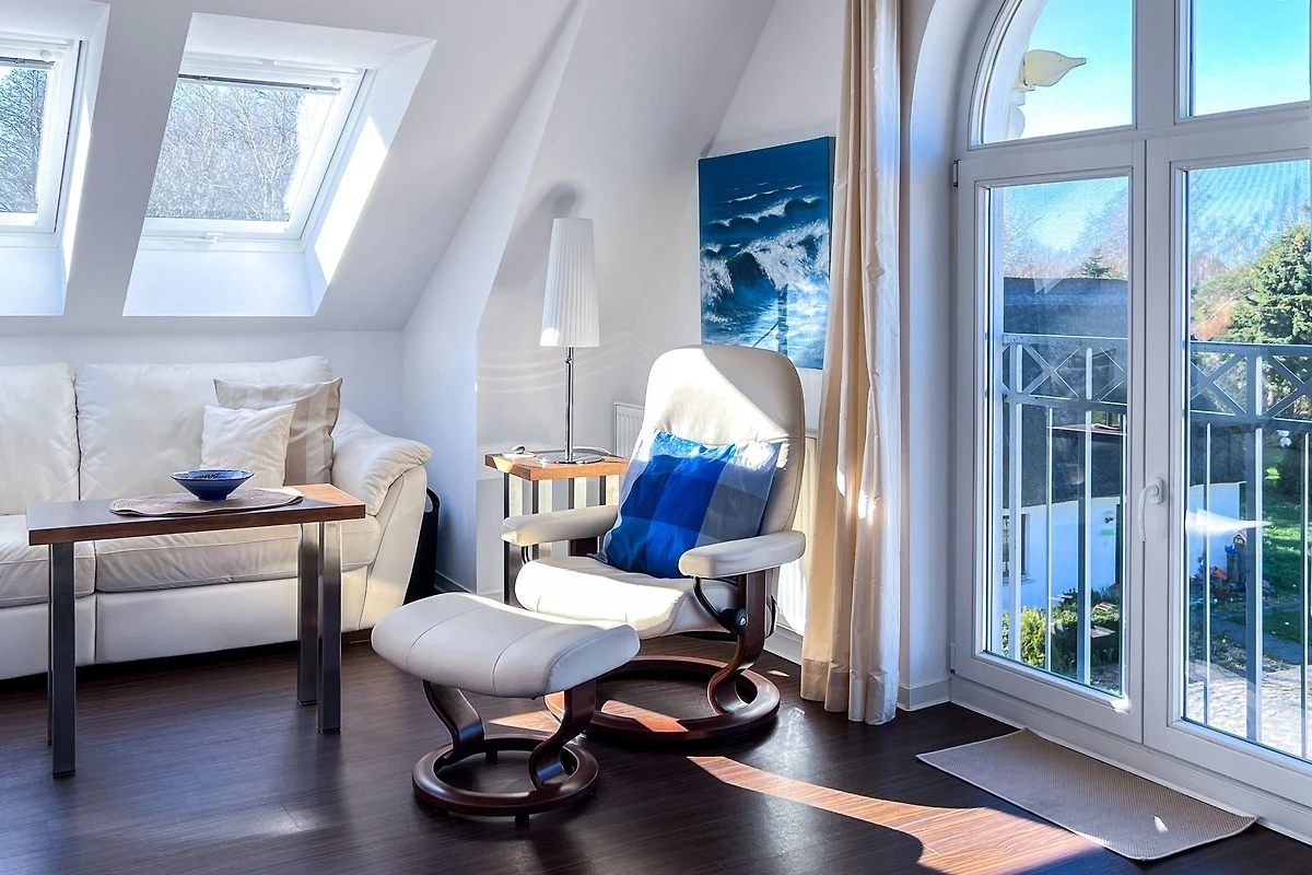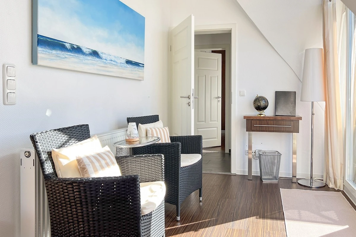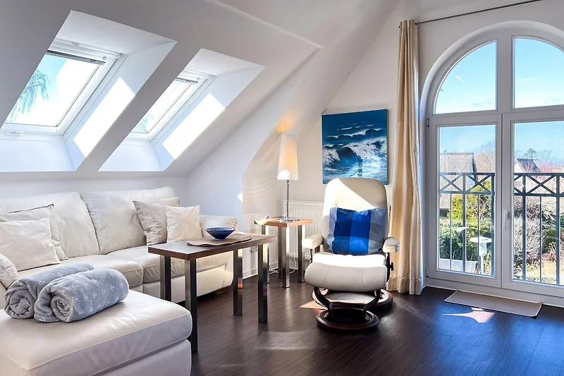 Beginnen Sie den Tag auf Ihrem Balkon und geniessen Sie die frische Meeresbrise. Nach einem Tag an der Ostsee bietet der Balkon den perfekten Ort, um bei einem Glas Wein zu entspannen. Ein Elektrogrill und ein Sonnenschirm stehen für gemütliche Stunden im Freien zur Verfügung.