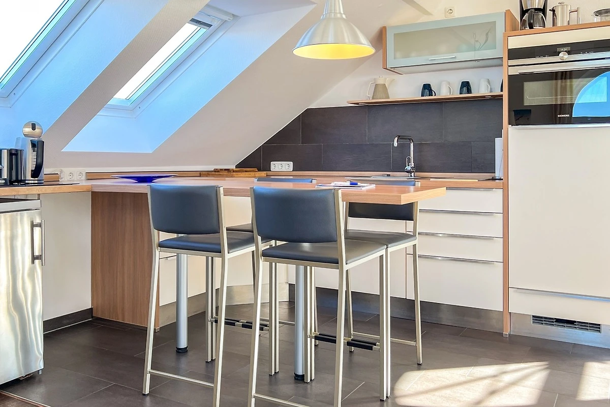 Voll ausgestattete Küche mit Geschirrspüler und Nespresso-Kaffeemaschine