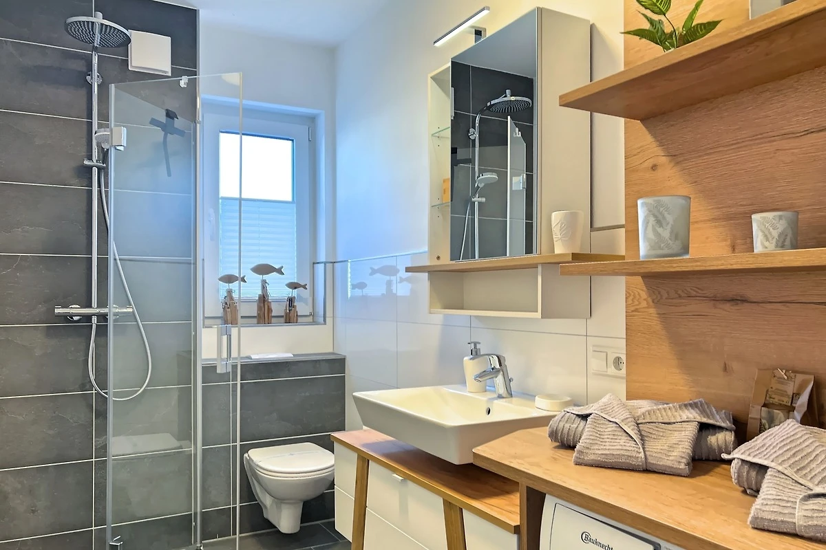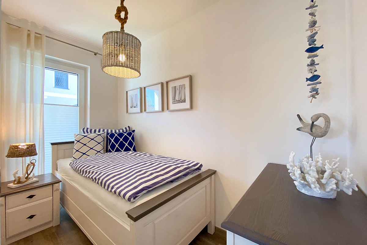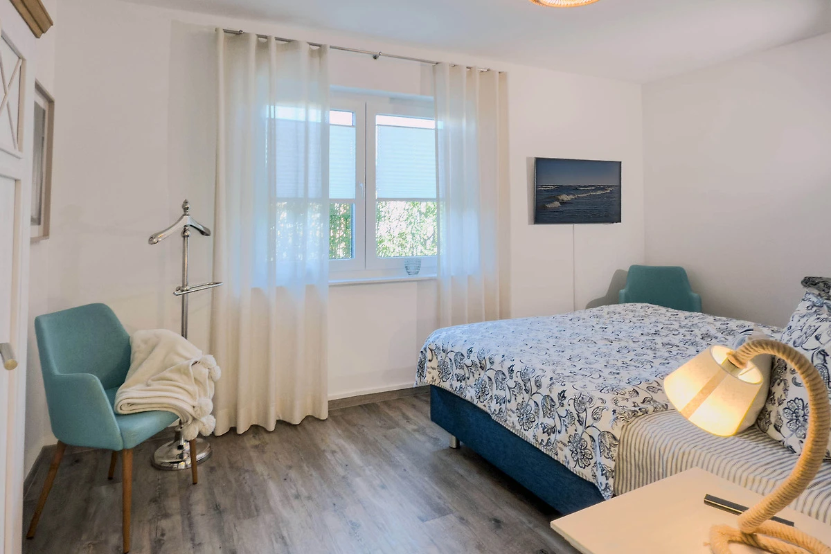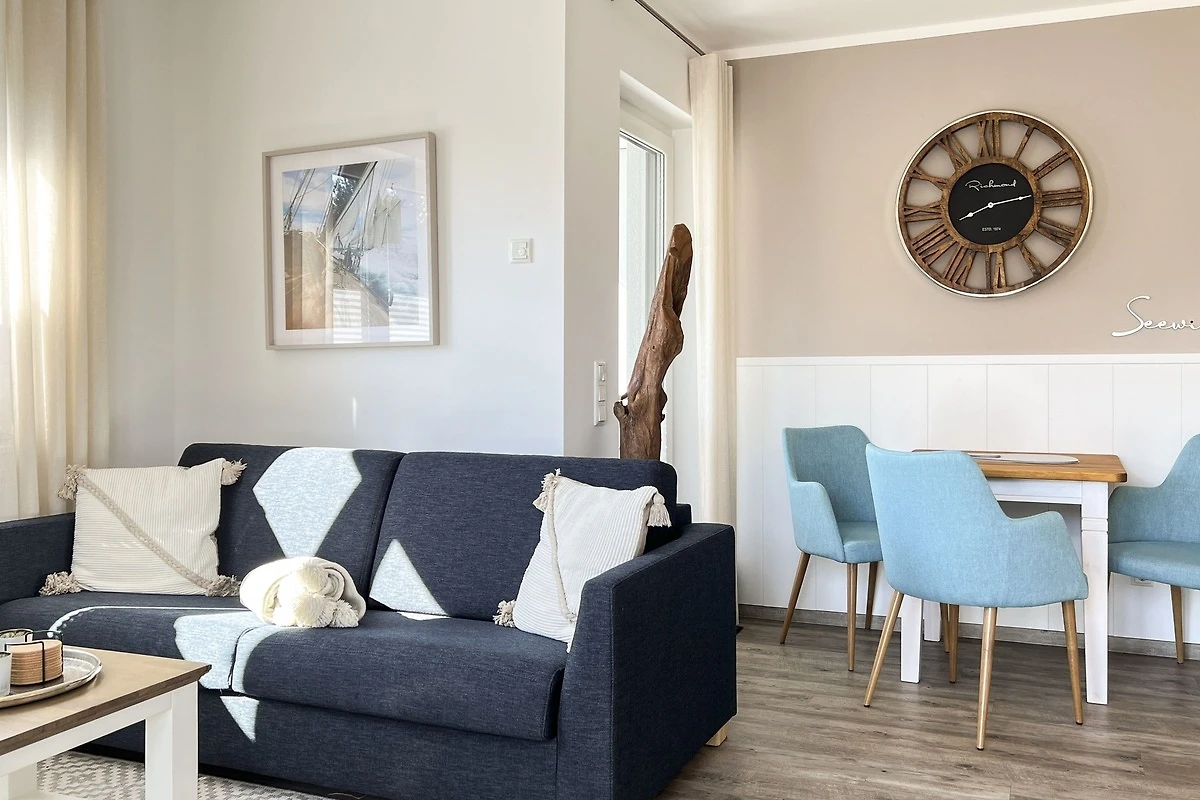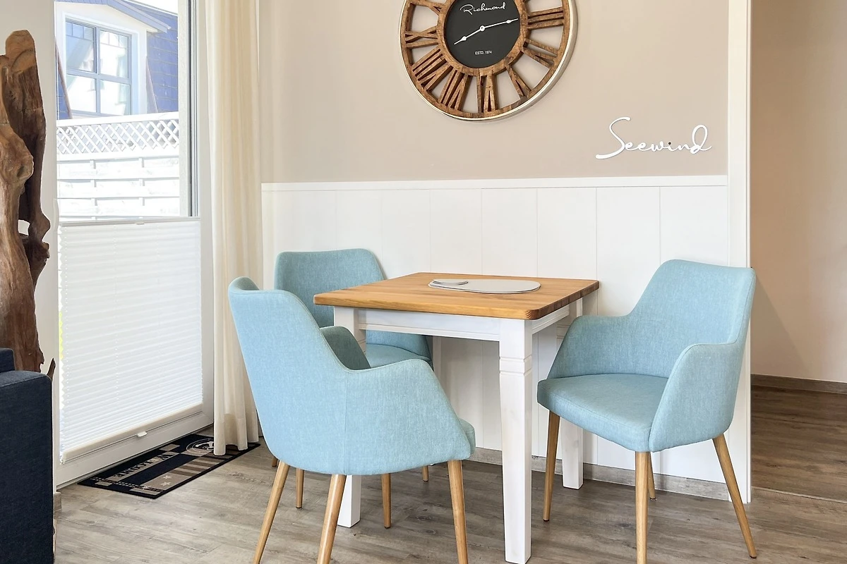 Die Ferienwohnung Seewind empfängt Sie mit einem hellen und freundlichen Ambiente. Der Wohn- und Essbereich ist geschmackvoll eingerichtet und bietet den perfekten Ort für entspannte Abende. Die voll ausgestattete Küche verfügt über moderne Geräte wie Spülmaschine, Backofen, Toaster, Filterkaffeemaschine, Wasserkocher und Nespresso-Maschine, sodass Sie mühelos kulinarische Köstlichkeiten zubereiten können. Die beiden separaten Schlafzimmer sorgen für erholsamen Schlaf.