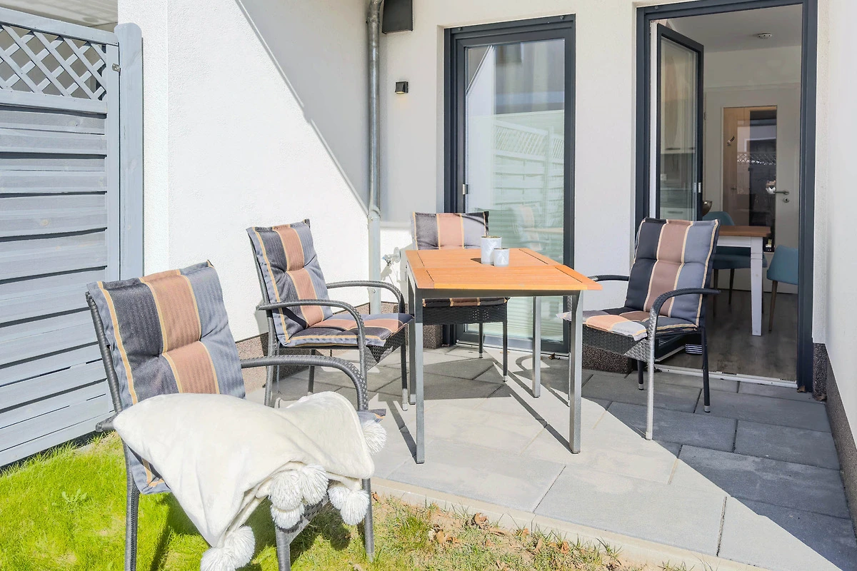 Geniessen Sie die frische Ostseeluft auf der eigenen Terrasse, ausgestattet mit Gartenmöbeln. Hier können Sie den Tag mit einem Frühstück im Freien beginnen oder abends bei einem Glas Wein ausklingen lassen.