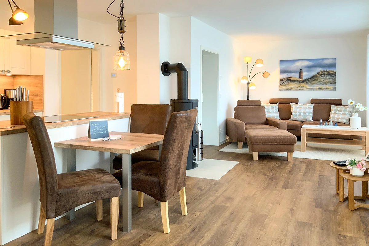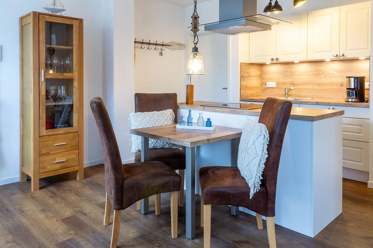 Die Ferienwohnung "Sterntaucher, Whg. 03" empfängt Sie mit einer harmonischen Kombination aus modernem Komfort und maritimem Ambiente. Der helle Wohnbereich mit Kamin lädt zu entspannten Stunden ein, während die voll ausgestattete Küche keine Wünsche offenlässt. Geniessen Sie Ihre Mahlzeiten auf der eigenen Terrasse mit Blick ins Grüne. Das luxuriöse Badezimmer und das gemütliche Schlafzimmer bieten zusätzlichen Komfort für erholsame Nächte.