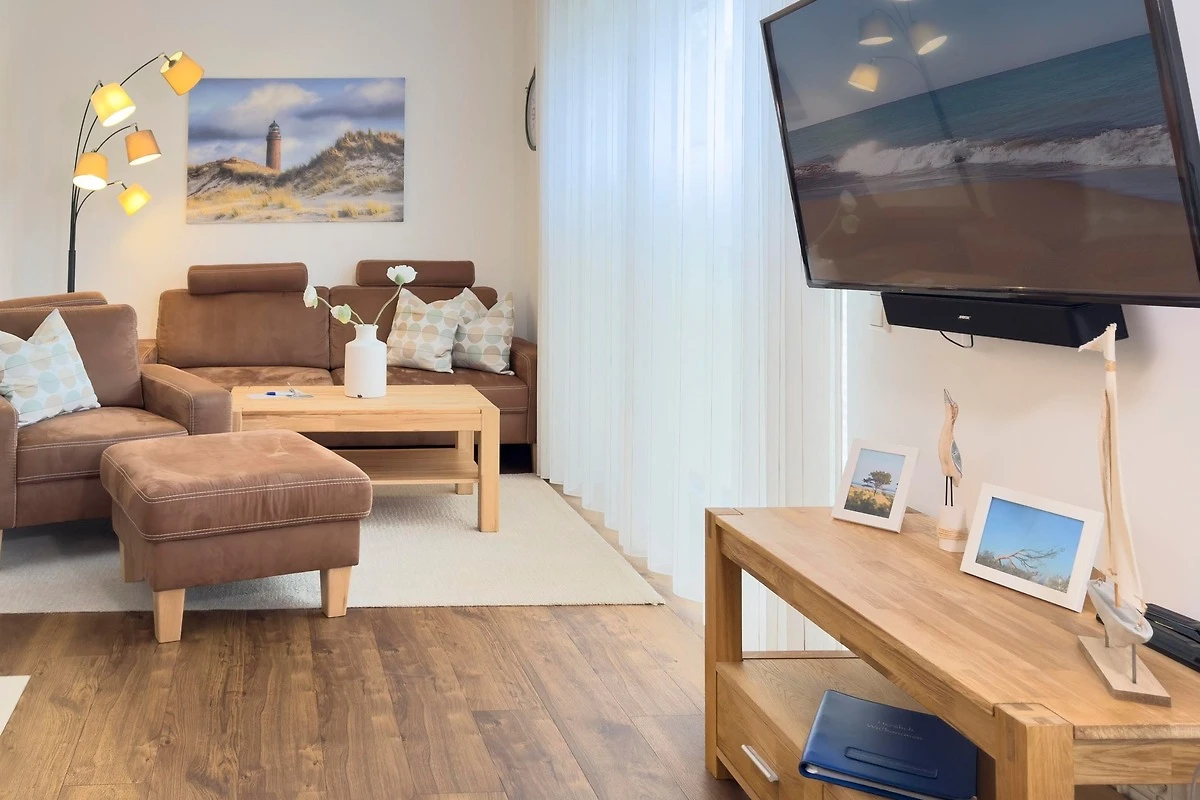 Willkommen in der Ferienwohnung "Sterntaucher, Whg. 03" in Prerow! Diese elegante Unterkunft bietet auf 61 m² Platz für bis zu 2 Personen und verbindet modernen Komfort mit maritimem Flair.
