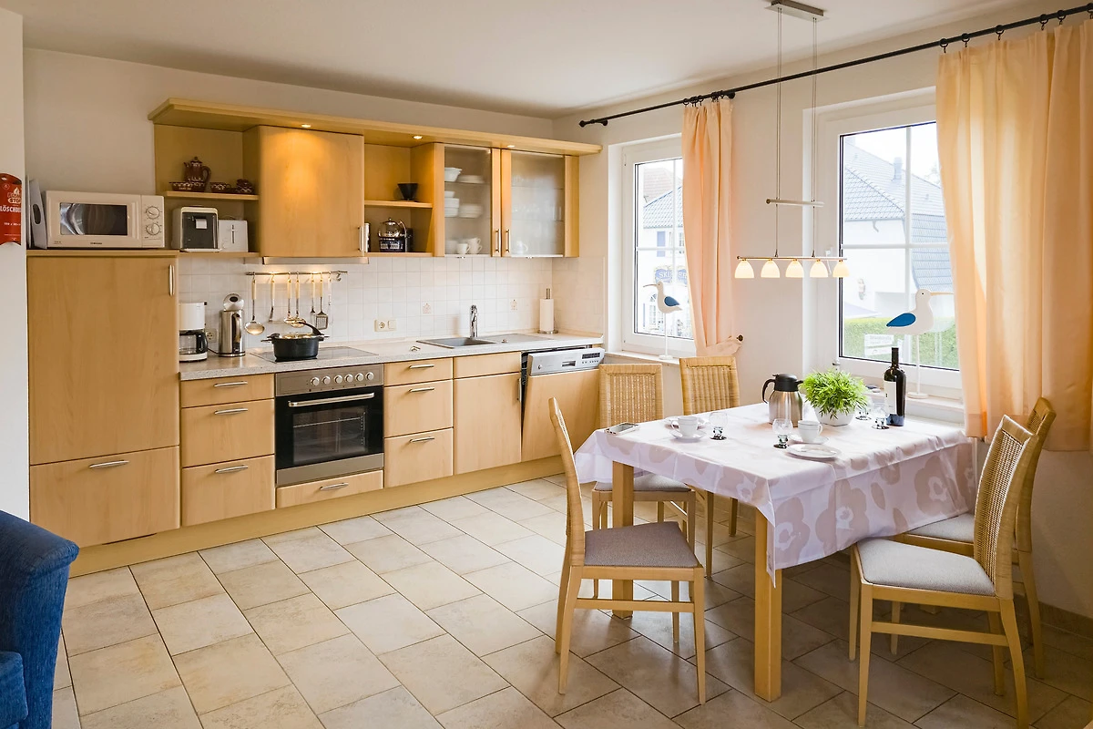 Die Ferienwohnung Strandnest empfängt Sie mit einer hellen und einladenden Atmosphäre. Der Wohnbereich mit gemütlicher Schlafcouch bietet den perfekten Ort für entspannte Abende. Die voll ausgestattete Küche verfügt über moderne Geräte wie Espressomaschine, Backofen, Spülmaschine, Mikrowelle, Kühlschrank, Toaster und Wasserkocher, sodass Sie mühelos kulinarische Köstlichkeiten zubereiten können. Das separate Schlafzimmer mit Doppelbett sorgt für erholsamen Schlaf.
