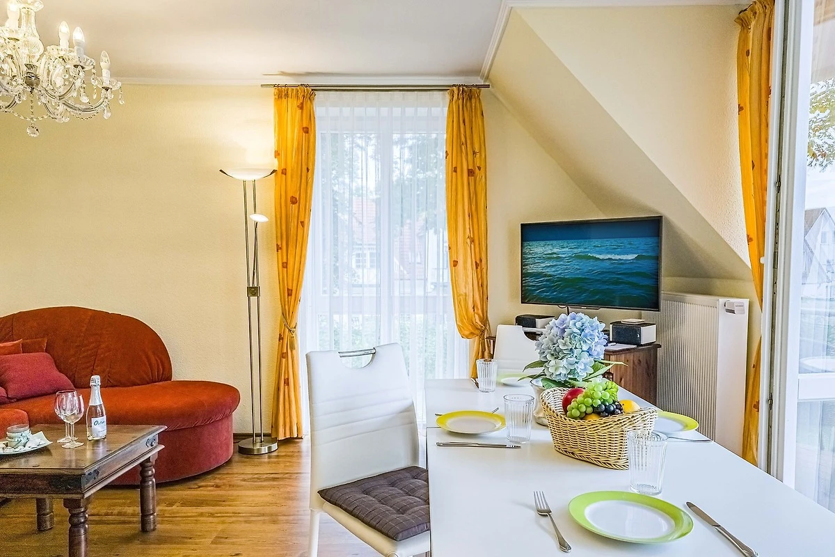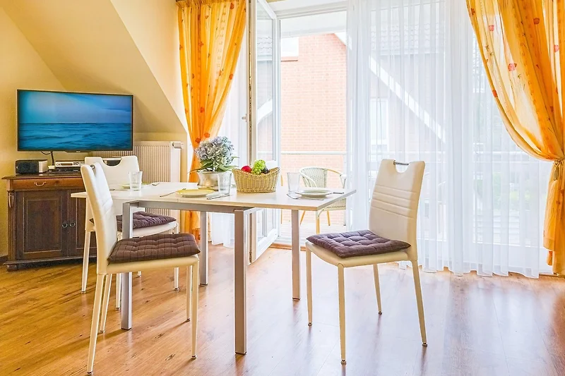 Geniessen Sie die frische Ostseeluft auf dem privaten Balkon mit Blick ins Grüne. Hier können Sie den Tag mit einem Frühstück im Freien beginnen oder abends bei einem Glas Wein ausklingen lassen.
