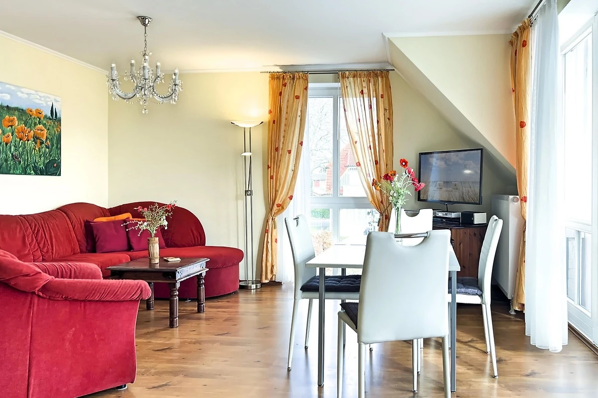 Die Ferienwohnung Strandperle empfängt Sie mit einer modernen und einladenden Atmosphäre. Der offene Wohn- und Essbereich bietet den perfekten Ort für entspannte Abende. Die voll ausgestattete Küche verfügt über moderne Geräte, sodass Sie mühelos kulinarische Köstlichkeiten zubereiten können. Die beiden separaten Schlafzimmer sorgen für erholsamen Schlaf.