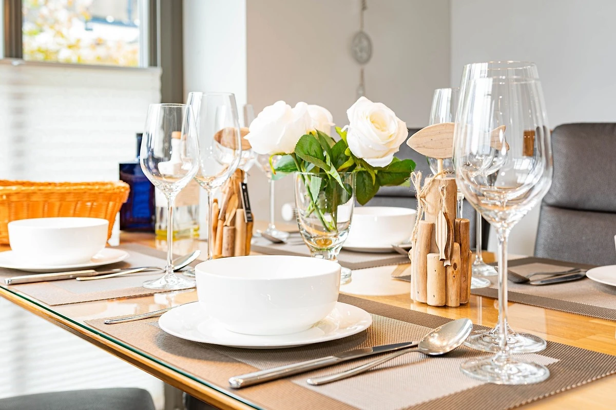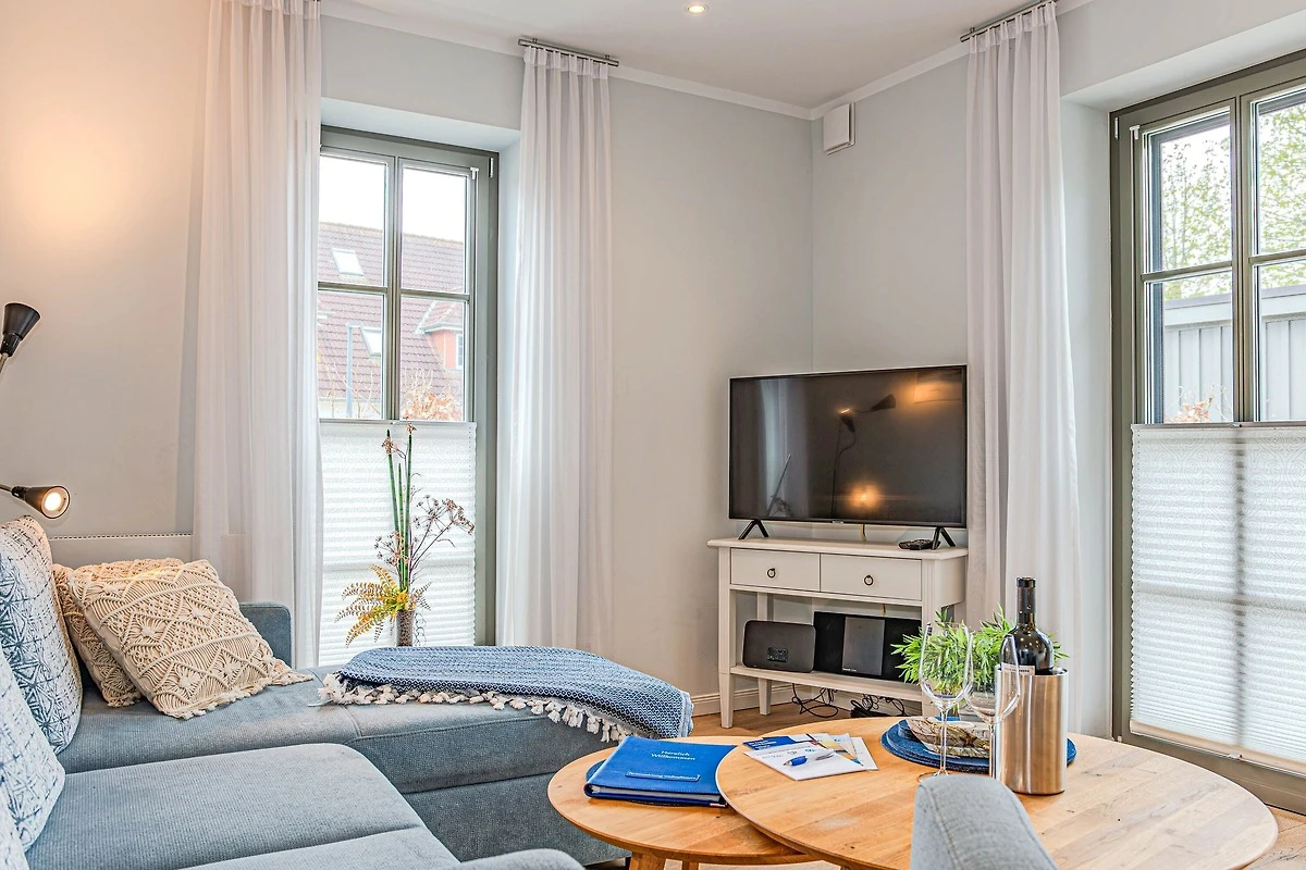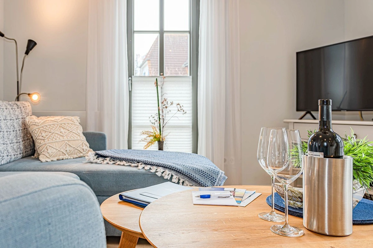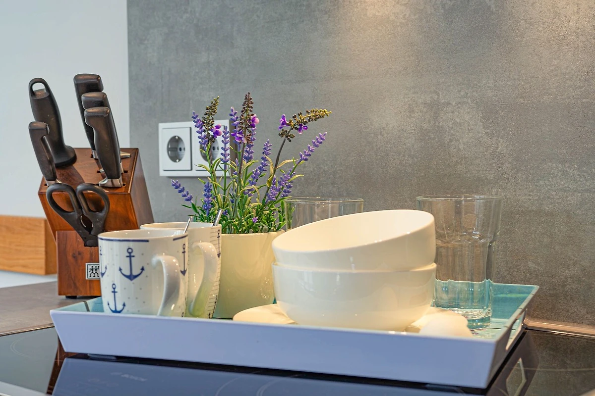 Die Ferienwohnung Wellenflüstern besticht durch ihre hochwertige Ausstattung und das stilvolle Ambiente. Der offene Wohn- und Essbereich mit Gaskamin lädt zu gemütlichen Stunden ein, während die voll ausgestattete Küche keine Wünsche offenlässt. Die beiden Schlafzimmer bieten erholsamen Schlafkomfort, und das moderne Badezimmer sorgt für einen angenehmen Start in den Tag.