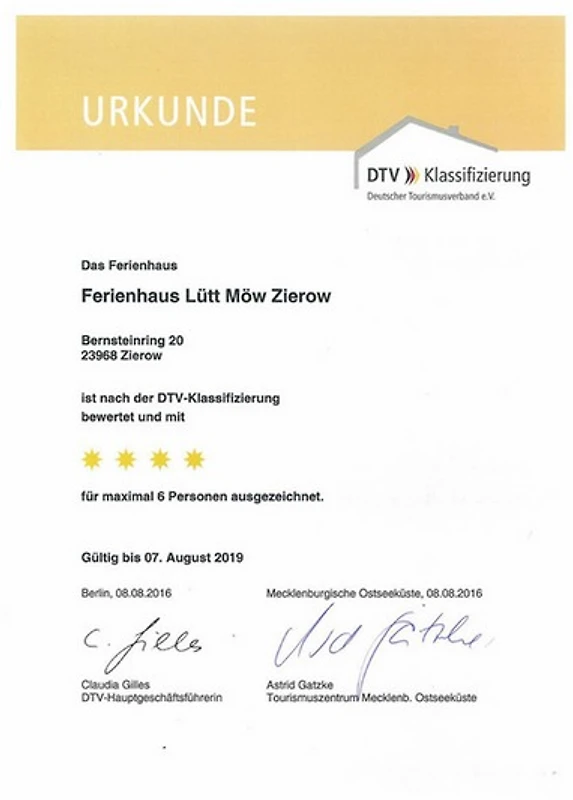 Beide Häuser wurden vom Deutschen Tourismusverband e.V. (DTV) mit jeweils 4 Sternen klassifiziert.
