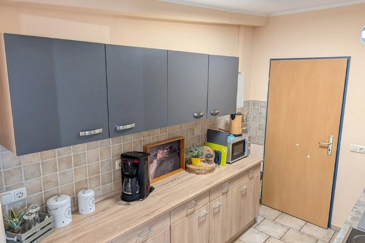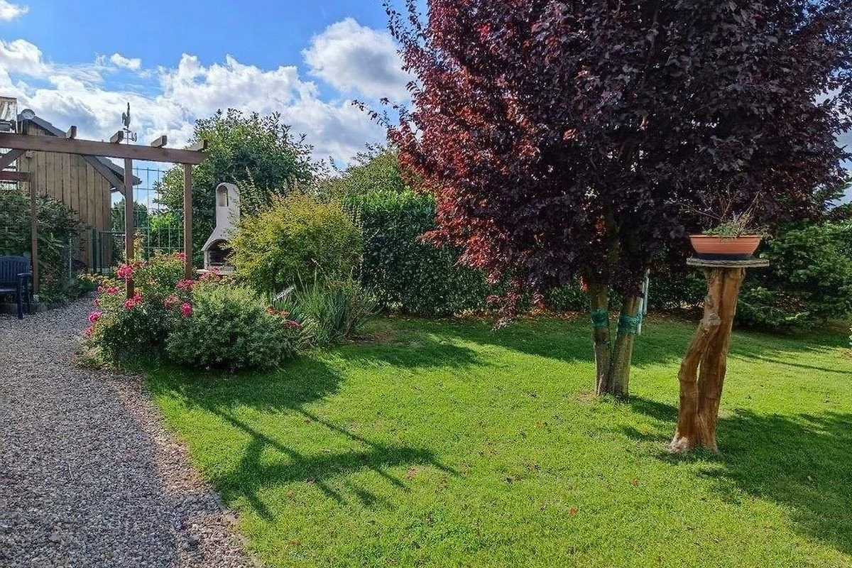Die Ferienwohnung besteht aus 2 Schlafzimmern mit einem Bad und Gäste WC , einem Wohnzimmer mit tollem Kachelofen , Küche und einer separaten Terrasse mit Grill und Blick ins Grüne.