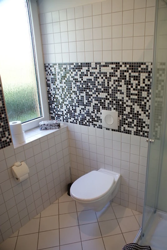 - Duschbad mit Dusche, WC, Spiegel und Föhn