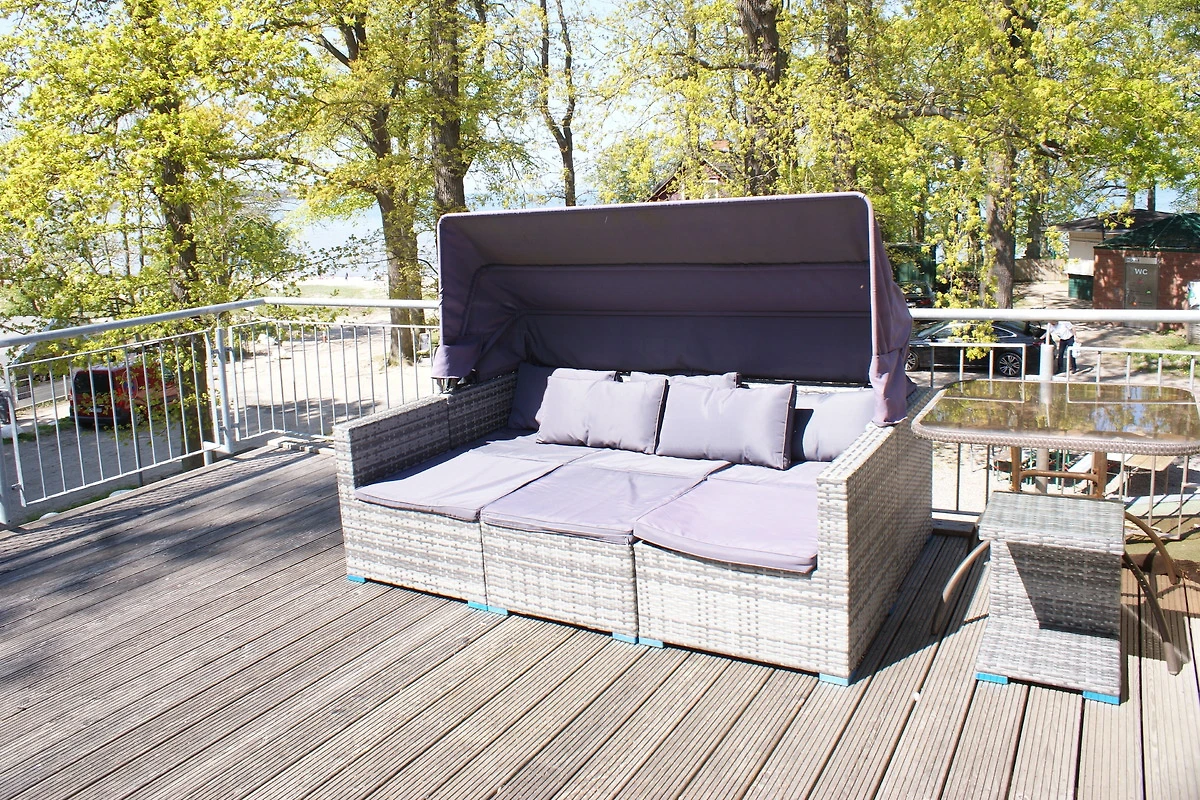 - grosse Dachterrasse mit Loungemöbel und Meerblick