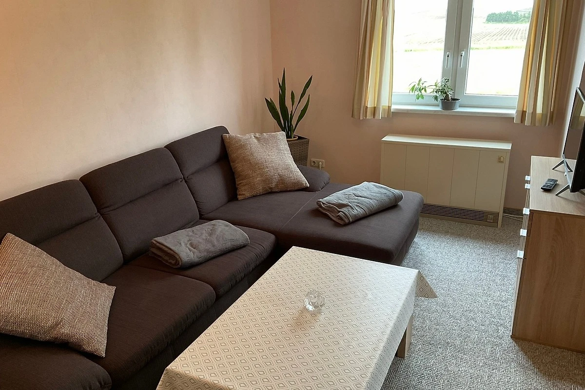 - gemütlich eingerichtetes Wohnzimmer mit Sofa (ausziehbar zur Schlafcouch) und TV