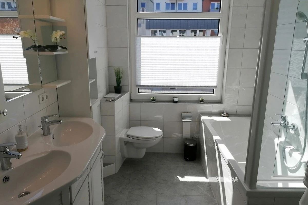 - Vollbad mit Badewanne, WC und Spiegelschrank
