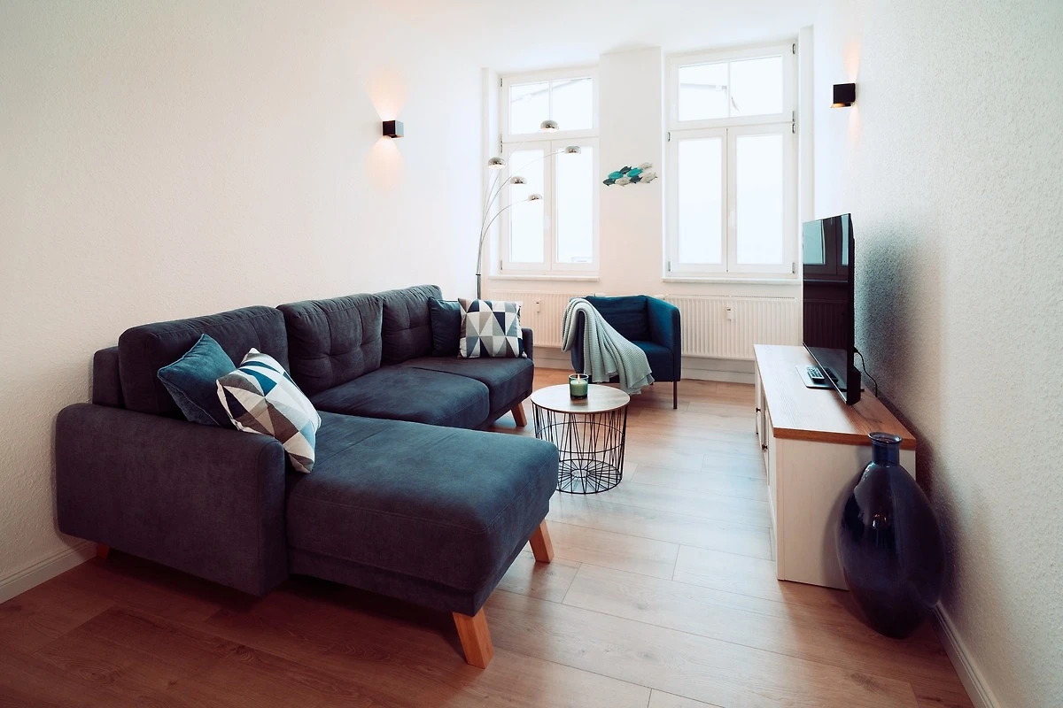 Die Ferienwohnung befindet sich in der 2. Etage eines sorgfältig modernisierten Altbaus und bietet mit 76 m² Wohnfläche grosszügigen Platz für bis zu vier Personen – ideal für Paare oder Freunde, die stilvolles Ambiente und eine zentrale Lage zu schätzen wissen.