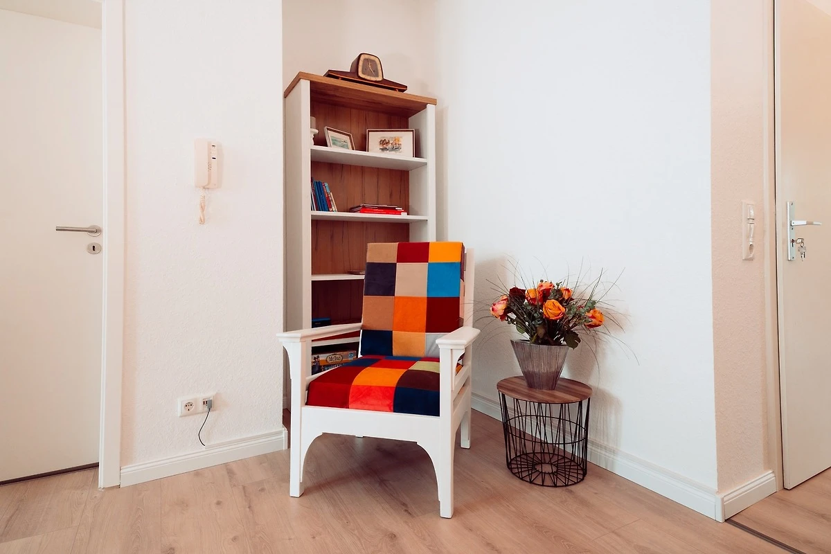 Die geschmackvolle Einrichtung verbindet modernes Design mit wohnlicher Gemütlichkeit. Helle Räume, hochwertige Möbel und liebevolle Details sorgen für ein behagliches Wohngefühl.
