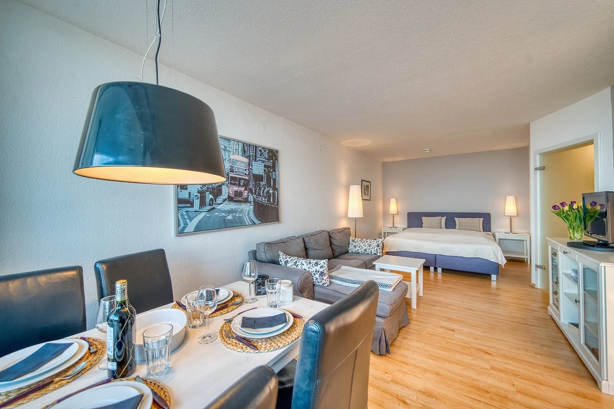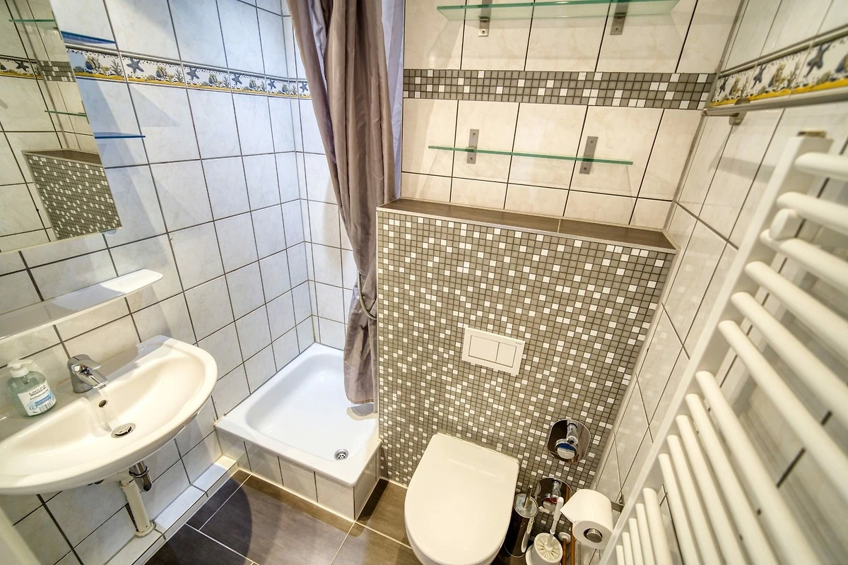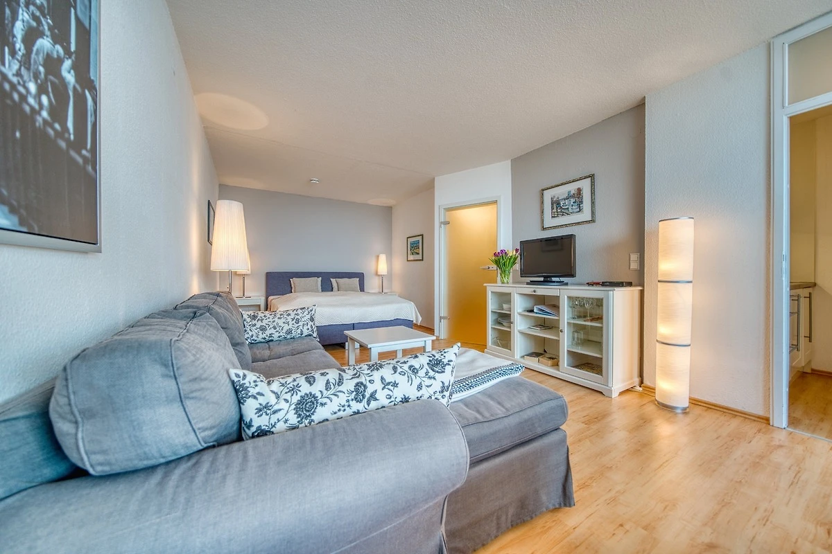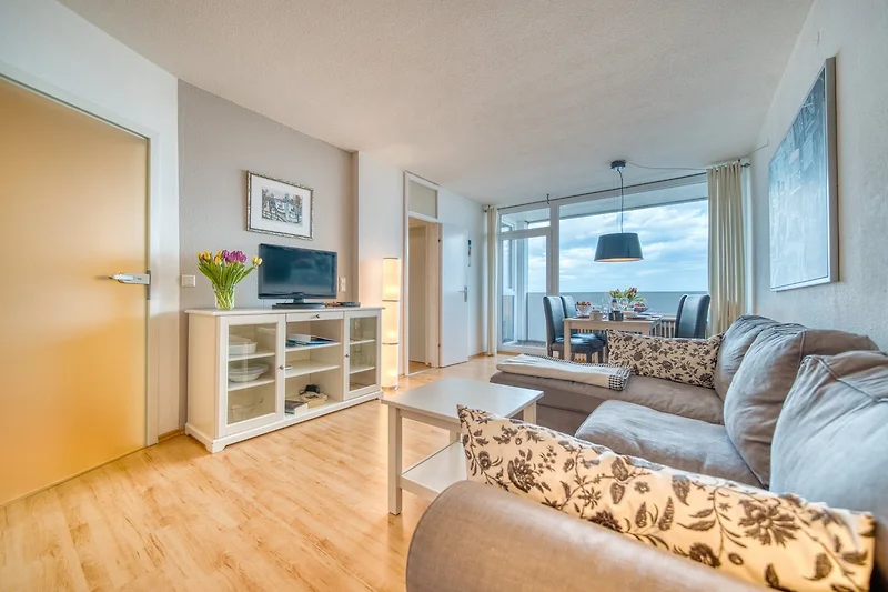 Wohn-/Schlafbereich mit Doppelbett, separates Kinderzimmer mit Einzelbett. Balkon mit unverbaubarem Ostseeblick. Offene Küchenzeile mit 4-Zonen-Induktionskochfeld, Kühlschrank, Kaffeemaschine und Küchenhelfern. Badezimmer mit Duschkabine, Hänge-WC und Handtuchtrockner. Gemütlicher Wohnbereich mit Couch und Essplatz, WLAN inklusive. Ca. 300 m zum Strand, Fahrstuhl, Parkplatz und Fahrradräume vorhanden. Nichtraucherwohnung, keine Haustiere. Ideal für Familien oder Paare, die Aussicht, Komfort und zentrale Lage am Meer geniessen möchten.