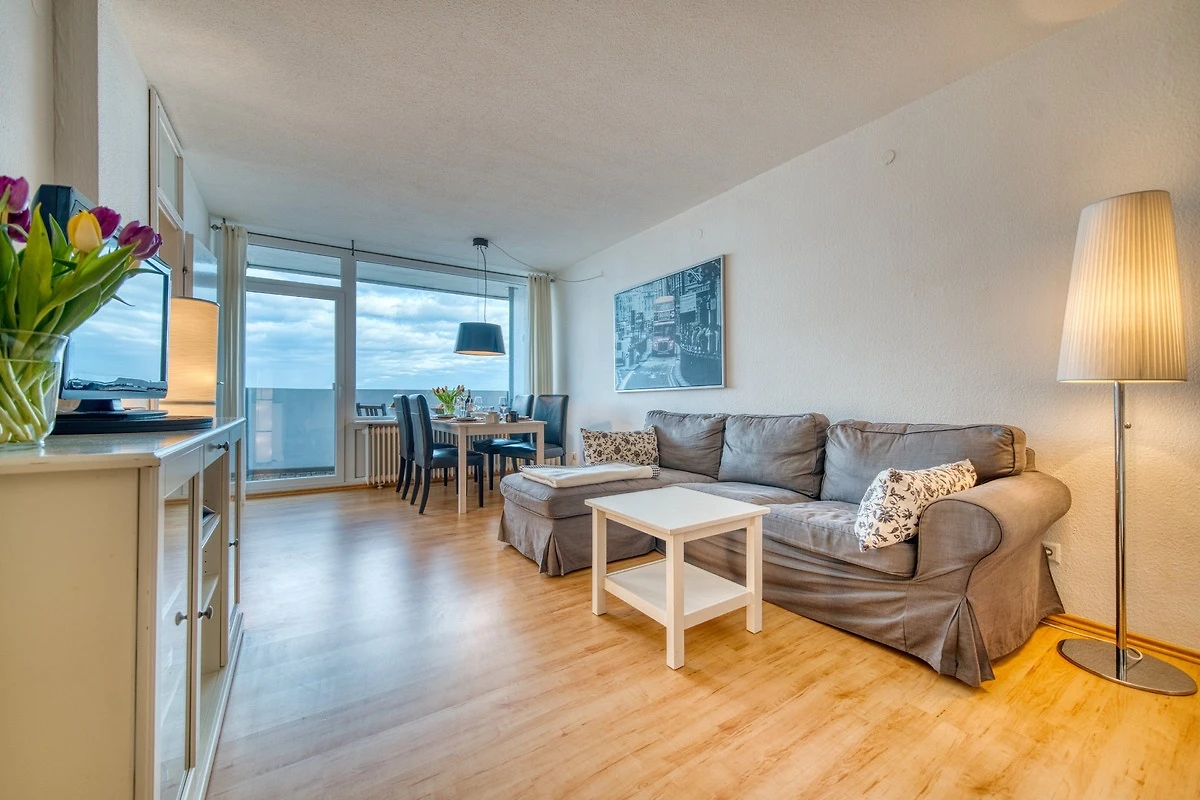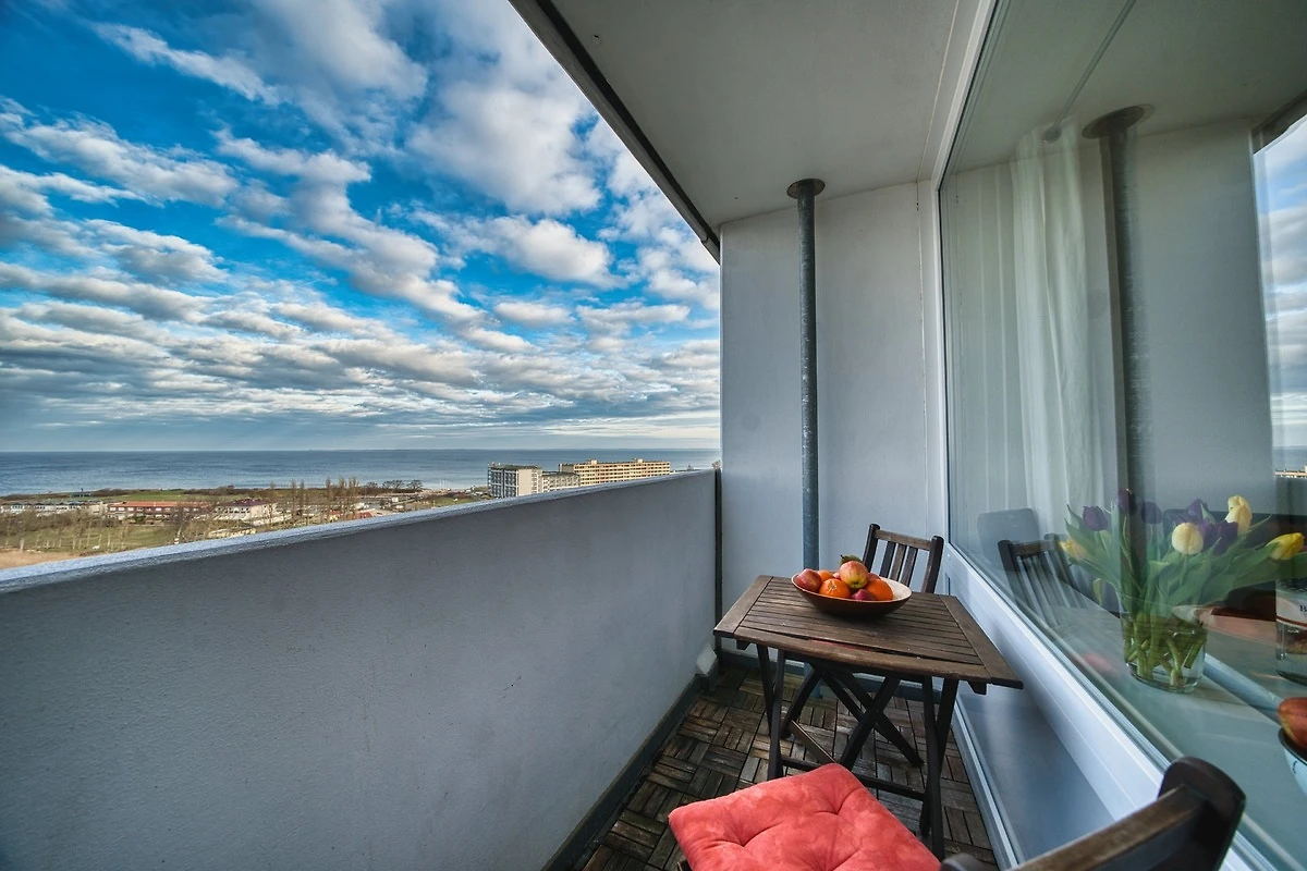 Hoch oben über dem Meer – Ferienwohnung mit Balkon [&] einzigartigem Ostseeblick für 3 Personen – Haus C, 11. Etage im Ostsee-Ferienpark Heiligenhafen