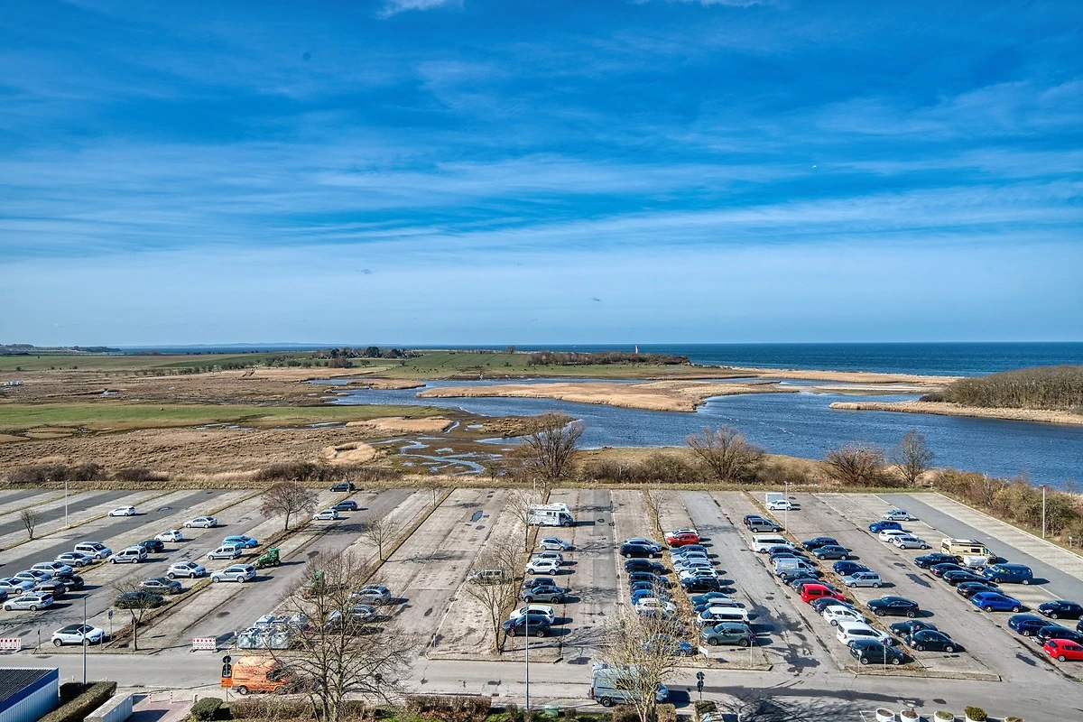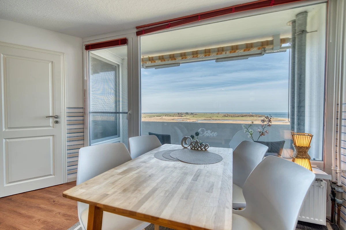 Die Ferienwohnung im Haus E, 9. Etage, mit Balkon zur Westseite, bietet einen herrlichen Ostseeblick und Sonne vom Nachmittag bis in die Abendstunden. Geniessen Sie das farbenfrohe Lichterspiel des Sonnenuntergangs an der Ostsee.