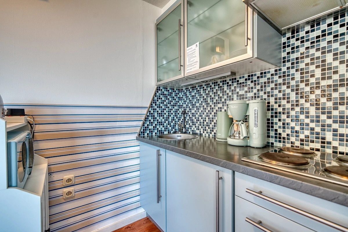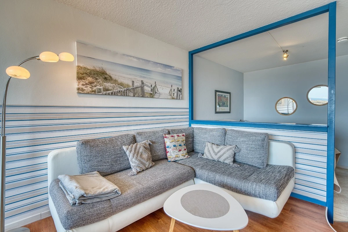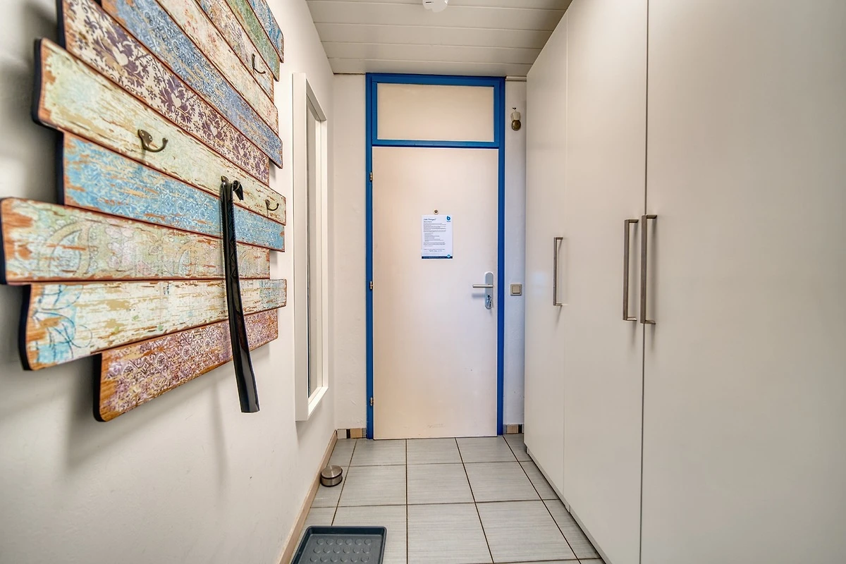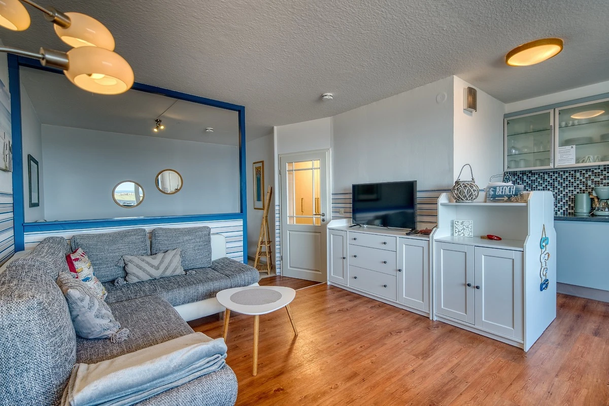 Wohnfläche 45 qm. Wohn-Esszimmer mit Flachbild-TV und Radio, Elternschlafraum mit Doppelbett, Kinderzimmer mit Einzelbett. Küche komplett ausgestattet mit Mikrowelle, 4-Plattenherd, Kühlschrank mit Gefrierfach. Bad mit WC und Duschkabine. Bonus: WLAN inklusive. Nichtraucher, keine Haustiere, max. 3 Personen. Fahrstuhl, Fahrradräume, Parkplatz vorhanden. Strand ca. 300 m entfernt. Ferienpark mit Läden, Aktiv-Hus mit Schwimmbad, Sauna, Wellness und Kinderspielwelt.