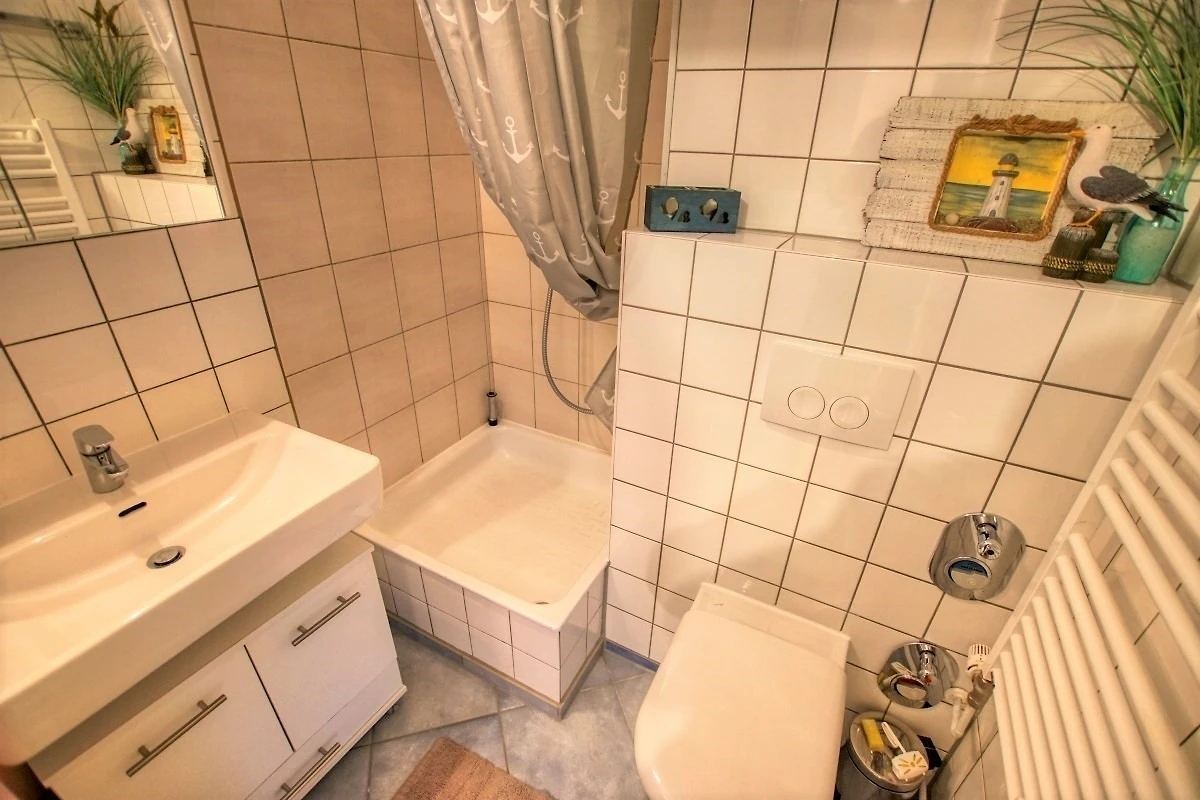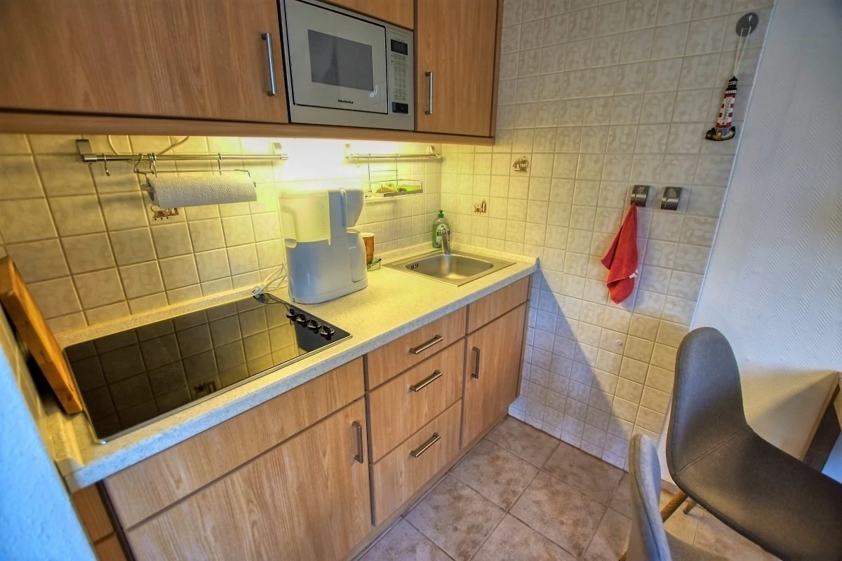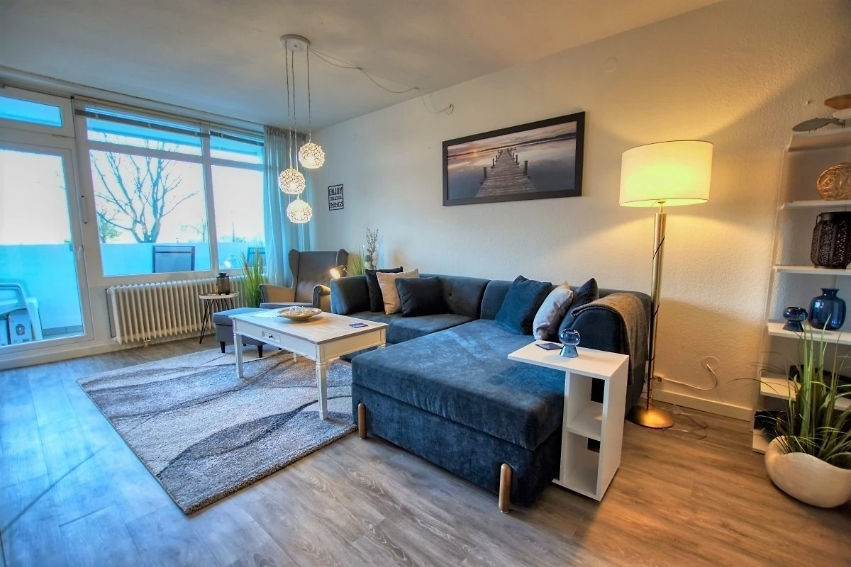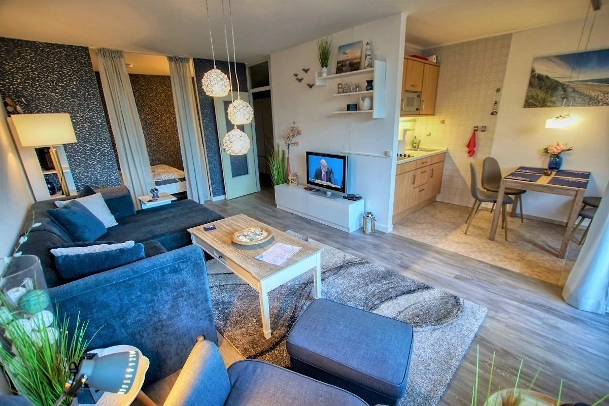 Ca. 45 qm Wohnfläche mit Wohn-Esszimmer (Schlafcouch, Sessel, Flachbild-TV), Schlafbereich mit Doppelbett, Küche mit Herd, Mikrowelle und Kaffeemaschine sowie Bad mit Dusche, WC und Handtuchtrockner. Balkon mit Blick auf den Innenhof. WLAN inklusive. Geeignet für max. 3–4 Personen, Nichtraucher, keine Haustiere. Abschliessbare Fahrradräume, Strand ca. 300 m, kostenfreier Parkplatz vorhanden.