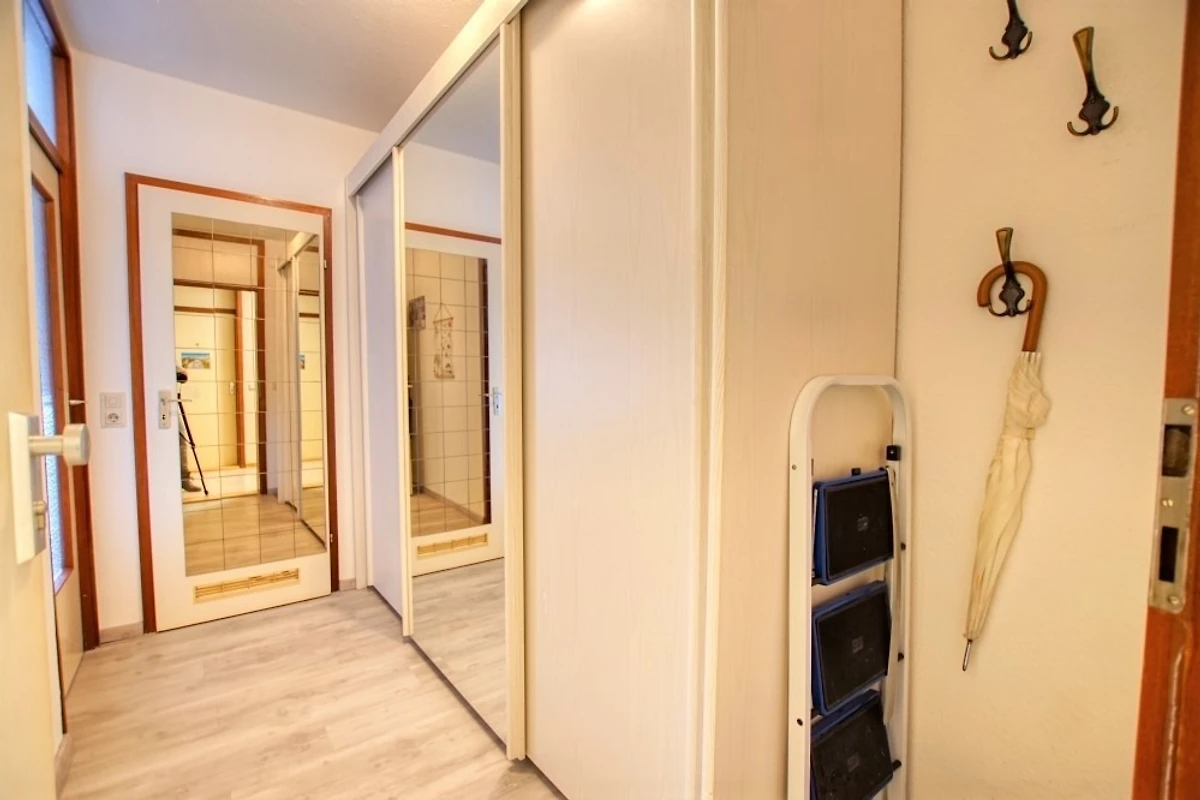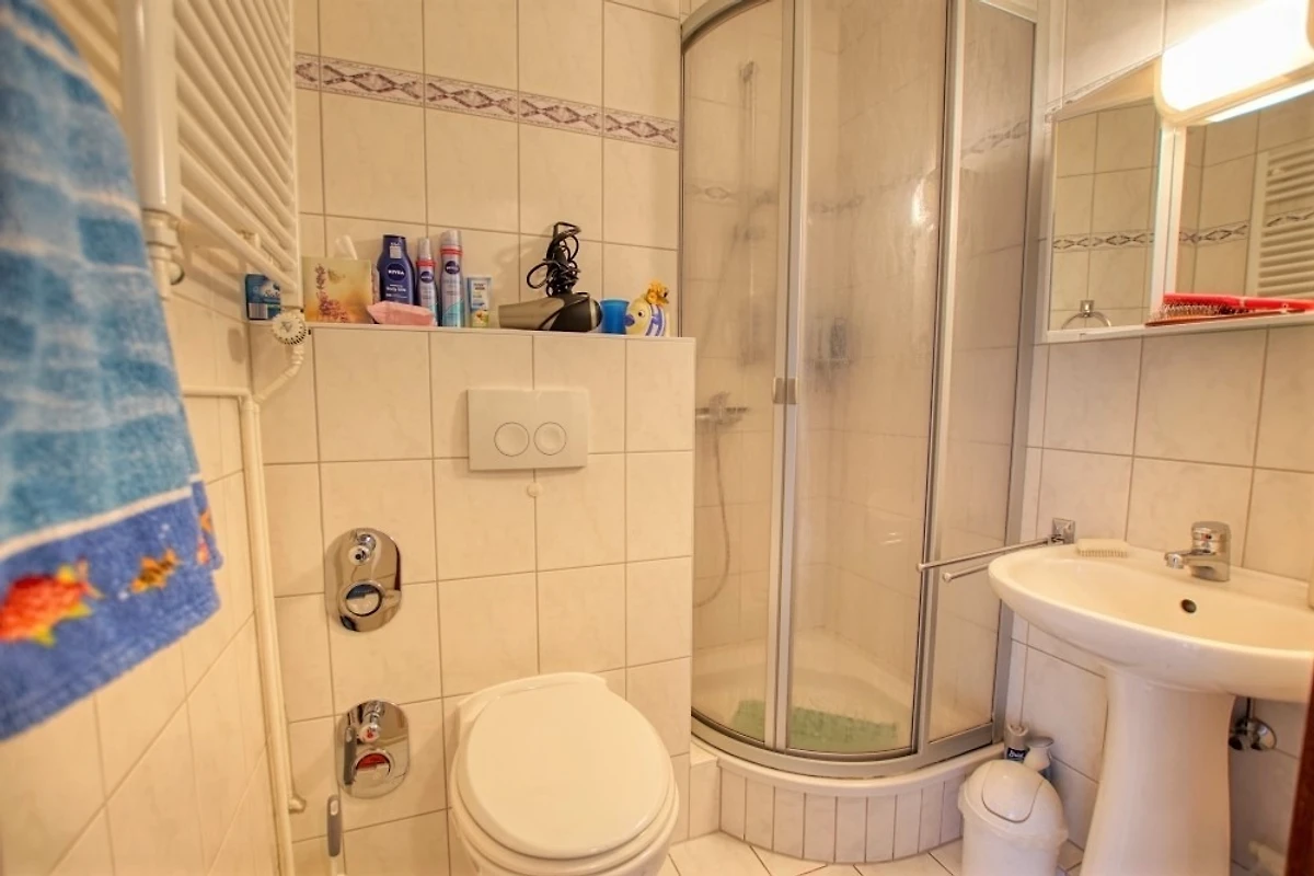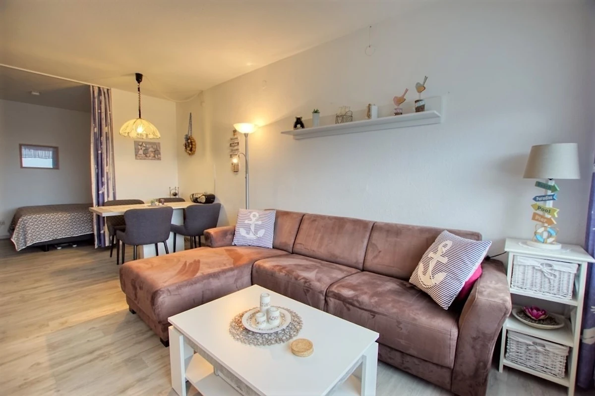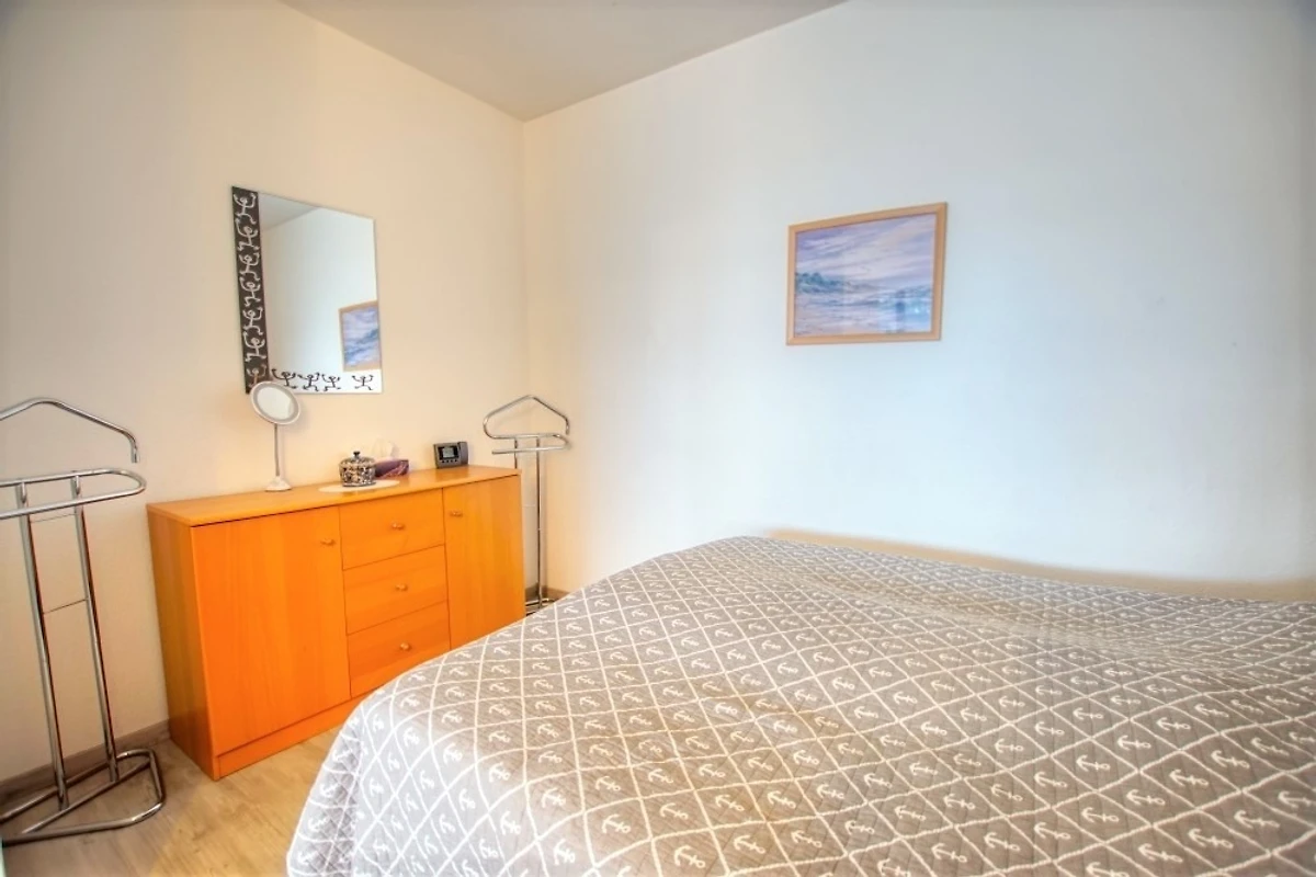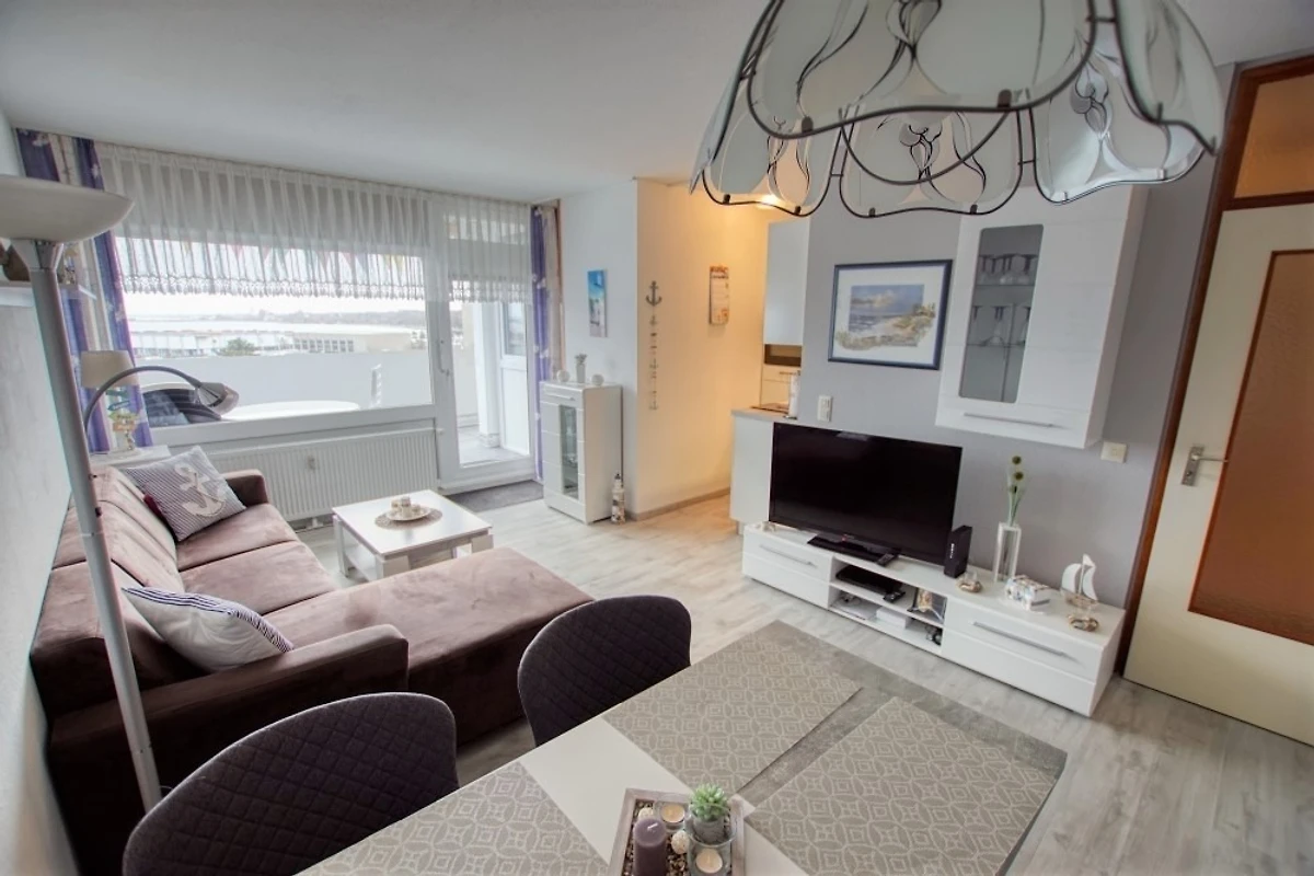 Wohn-/Esszimmer mit Sofa, Flachbild-TV und Radio, Schlafbereich mit Doppelbett, separates Kinderzimmer mit Etagenbett. Küche komplett ausgestattet (Kühlschrank mit Gefrierfach, Backofen, 2-Platten-Herd). Bad mit WC und Dusche. Balkon mit schöner Aussicht. Kostenloses WLAN. Nichtraucher, keine Haustiere, max. 4 Personen. Fahrstuhl, Fahrradräume, Strand ca. 300 m, Parkplatz vorhanden.