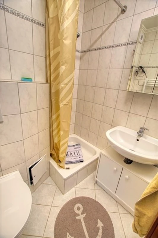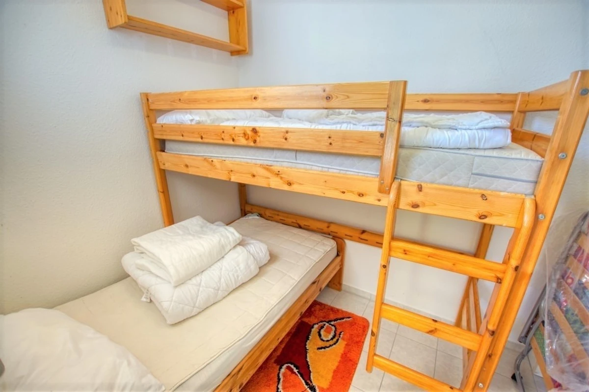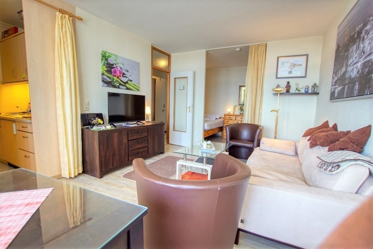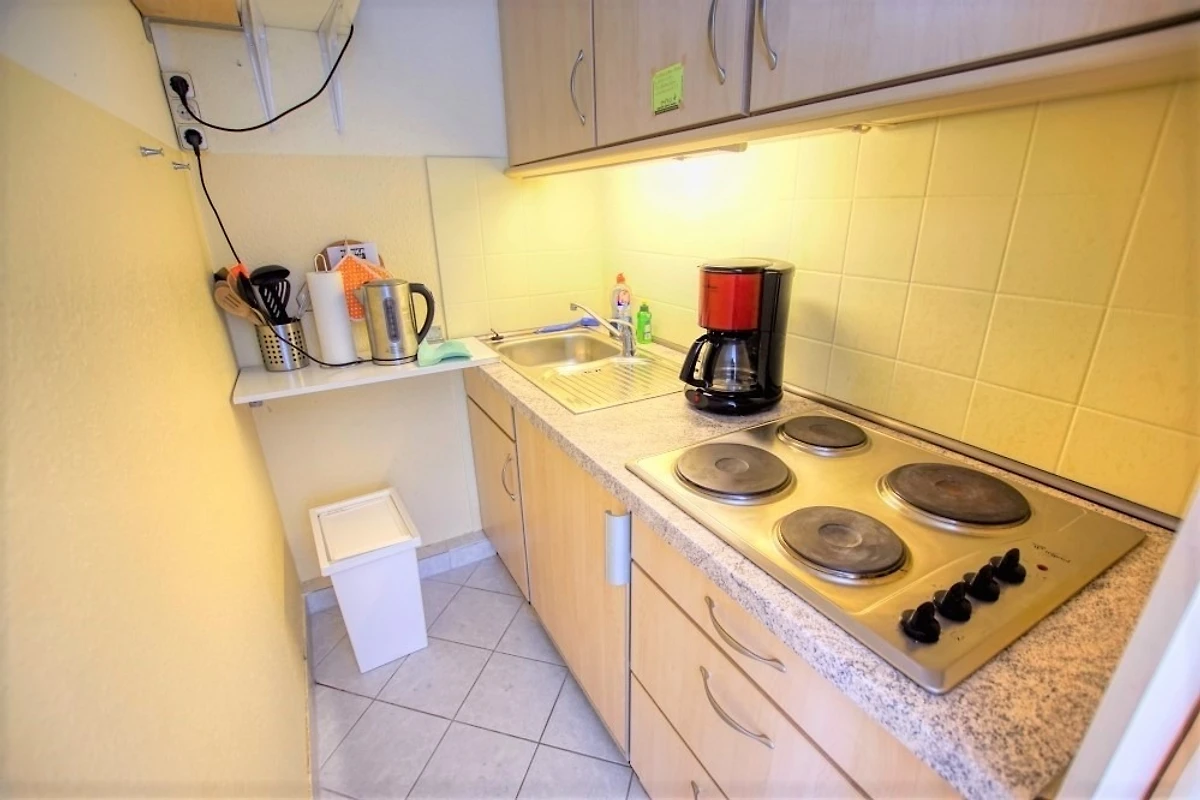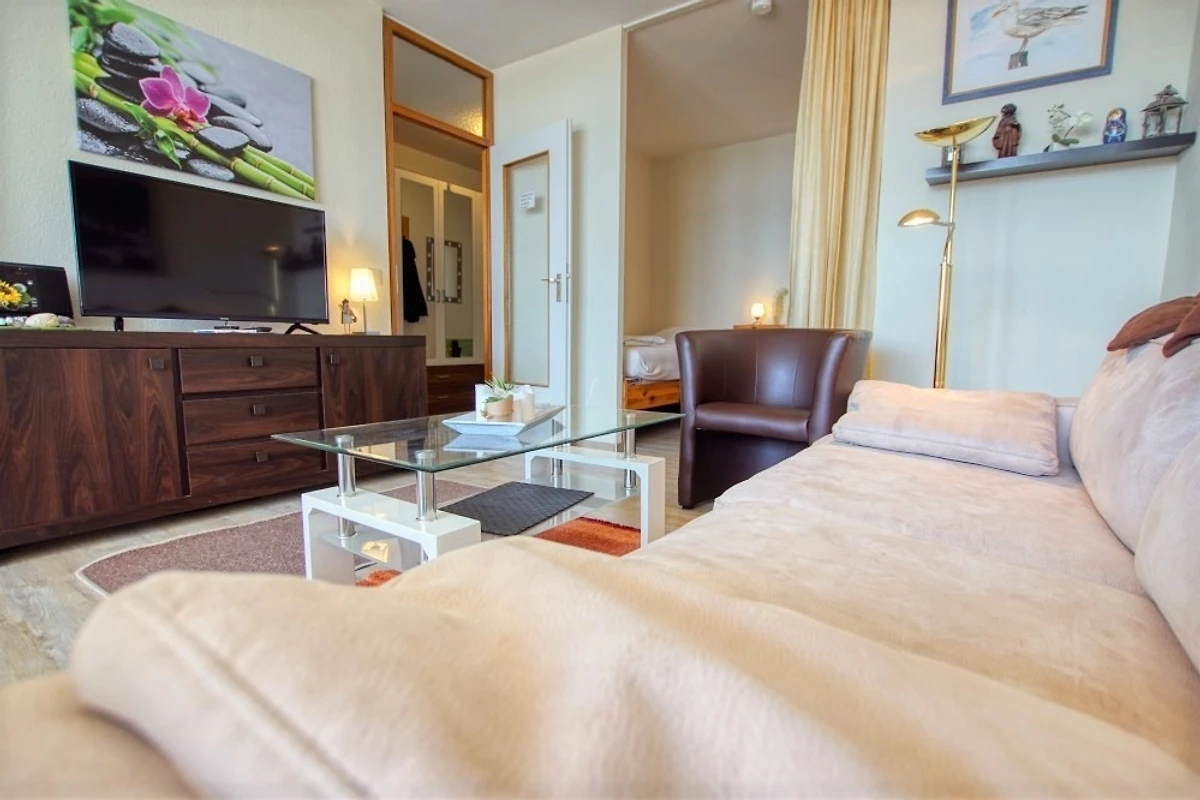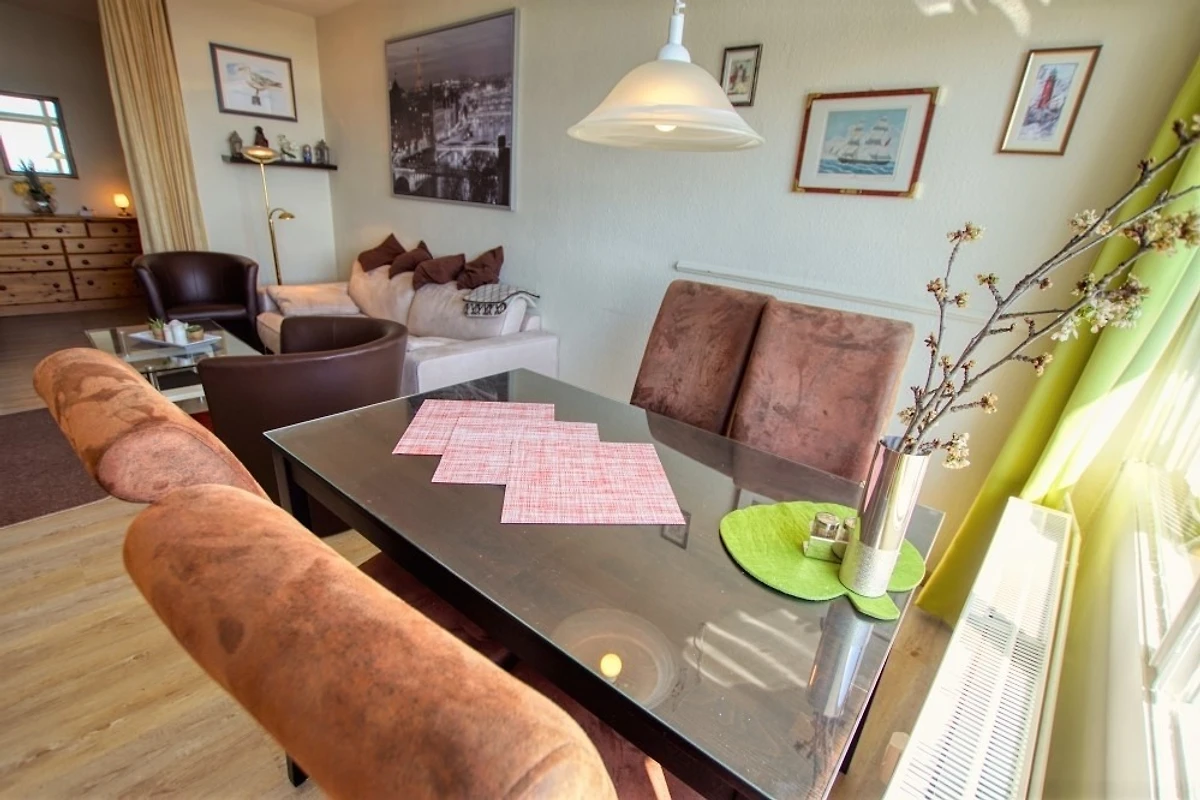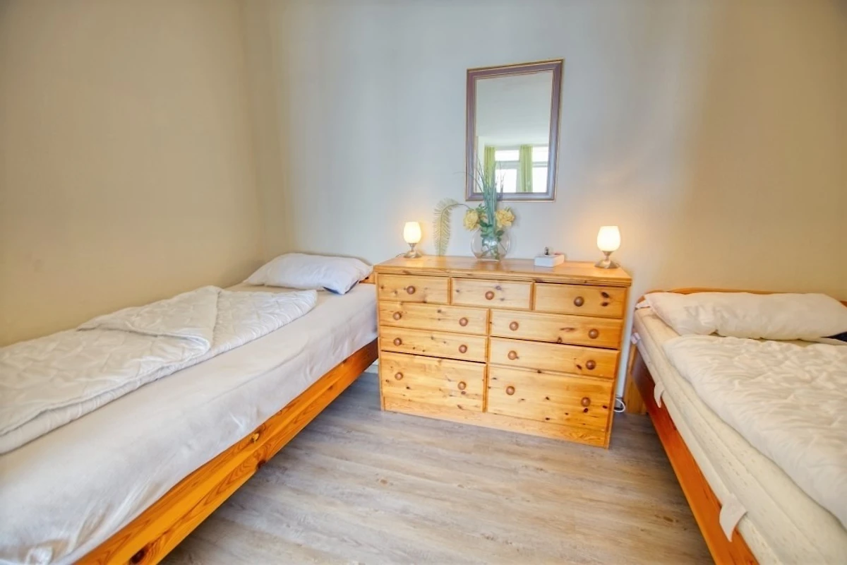 Wohnfläche 45 m², Wohn-Esszimmer mit Sofa, Flachbild-TV, Radio und Einzelbetten, separates Kinderzimmer mit Etagenbett. Küche komplett ausgestattet mit Kühlschrank inkl. Gefrierfach und 4‑Platten-Herd. Bad mit Dusche und WC. Balkon mit herrlicher Aussicht. WLAN inklusive. Nichtraucherwohnung, keine Haustiere, max. 4 Personen. Fahrstuhl und Fahrradräume vorhanden, Strand ca. 300 m entfernt, kostenloser Parkplatz.