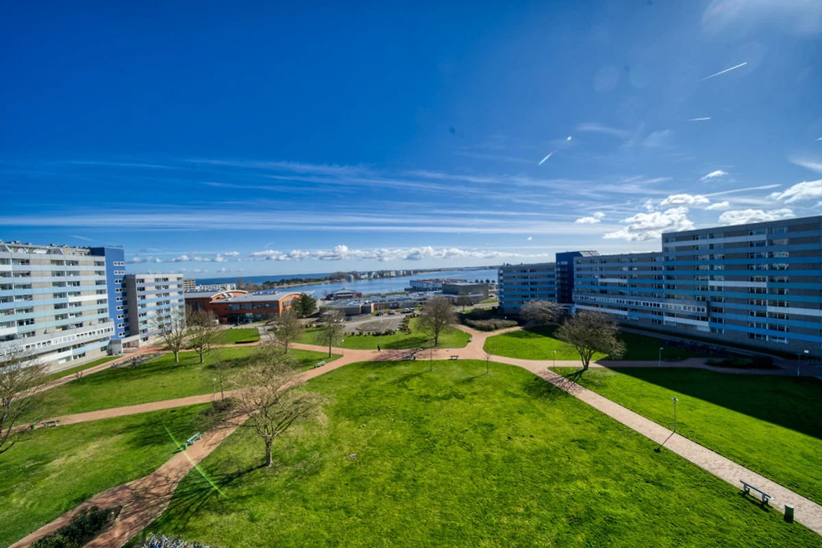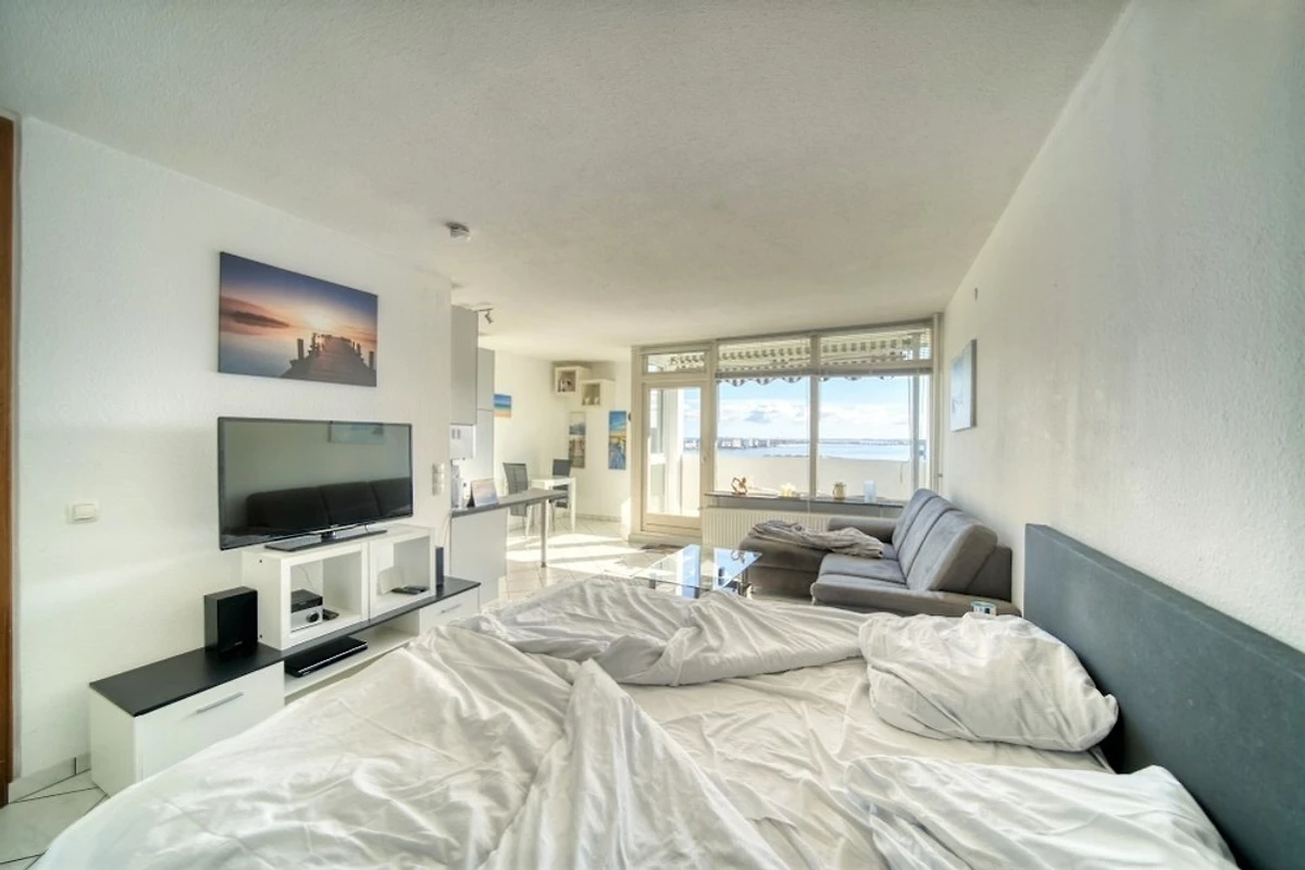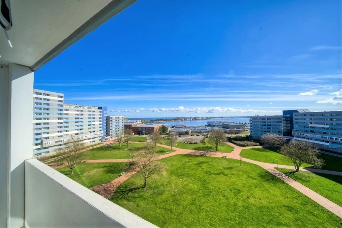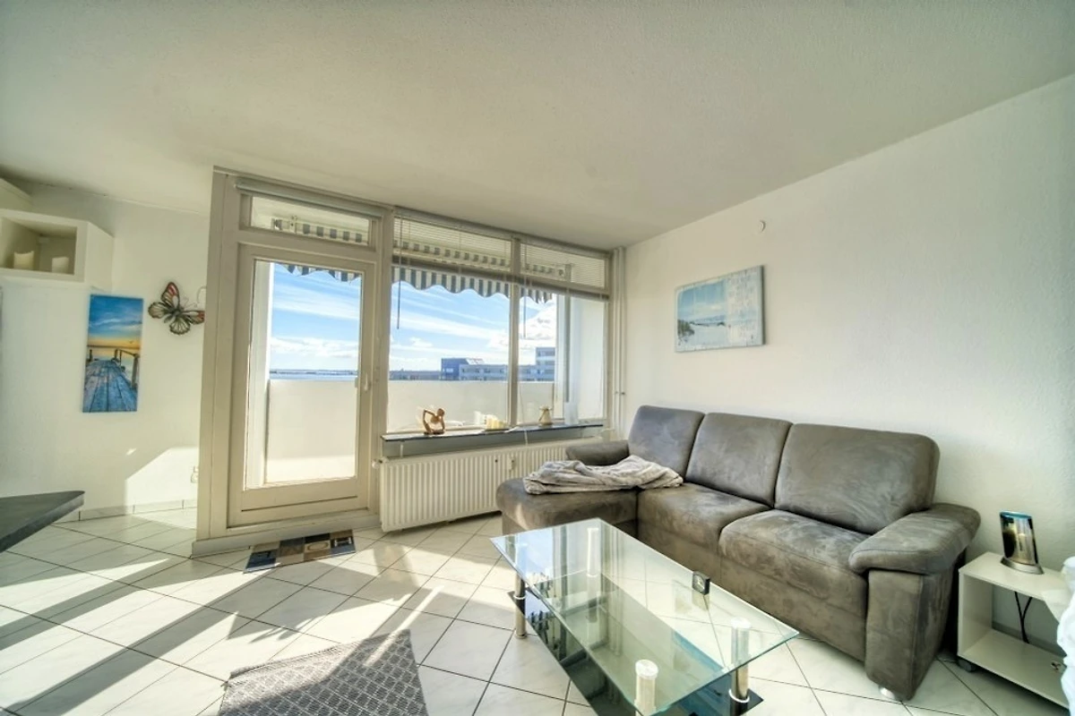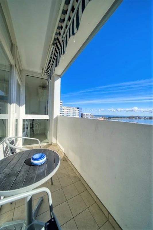 Die Wohnung liegt im Haus G Ferienpark, in der 7. Etage, mit Balkon zur Ostseite, der einen herrlichen Blick auf die Ostsee in Richtung der Fehmarnsundbrücke sowie auf den Binnensee mit Stadt und Yachthafen bietet.