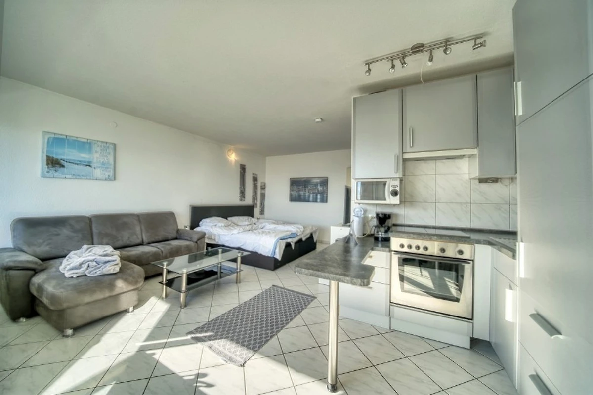 38 qm für bis zu 2 Personen: Wohn-/Schlafzimmer mit Doppelbett und Sitzecke, offene Küche mit 4-Plattenherd, Mikrowelle, Kühlschrank. Bad mit Dusche/WC. TV, DVD, Stereoanlage mit USB/AUX. Bonus: WLAN inklusive. Nichtraucher, keine Haustiere, nicht allergikerfreundlich. Fahrstuhl, Fahrradräume, kostenfreier Parkplatz. Strand ca. 300 m. Ferienpark mit Läden, Aktiv-Hus, Schwimmbad, Sauna, Wellnesslandschaft und Kinderspielwelt – ideal für erholsame Tage.