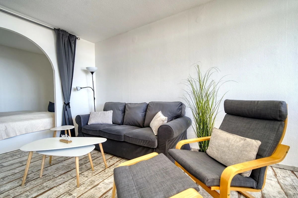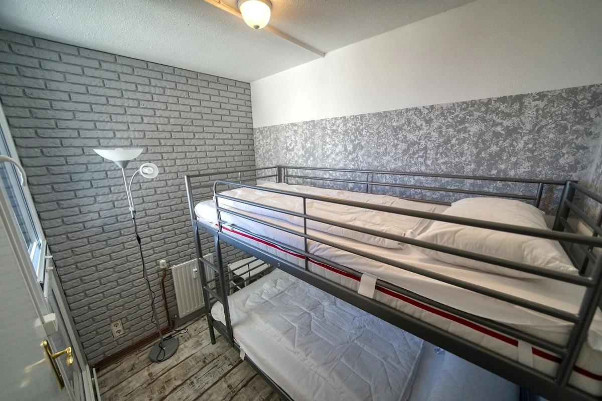Die Wohnung verfügt über einen separaten Schlafbereich mit Doppelbett sowie ein Kinderzimmer mit Etagenbett; ein Babybett kann bei Bedarf im Schlafzimmer aufgestellt werden. Die moderne Küche ist mit Backofen und Ceranfeld ausgestattet. Glasfaser-Internet steht ebenfalls zur Verfügung.