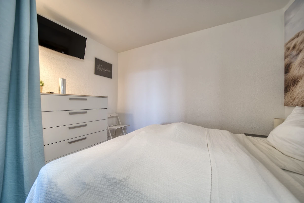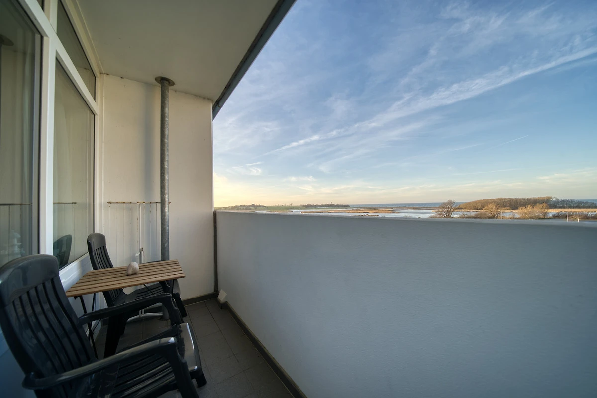 Willkommen in dieser charmanten Ferienwohnung im Haus K des beliebten Ferienparks Heiligenhafen. Die Unterkunft liegt in der 1. Etage und bietet auf 45 m² Wohnfläche Platz für bis zu 3 Personen. Vom Balkon aus geniessen Sie einen herrlichen Blick auf die gepflegten grünen Innenhofanlagen – perfekt für entspannte Urlaubsmomente.