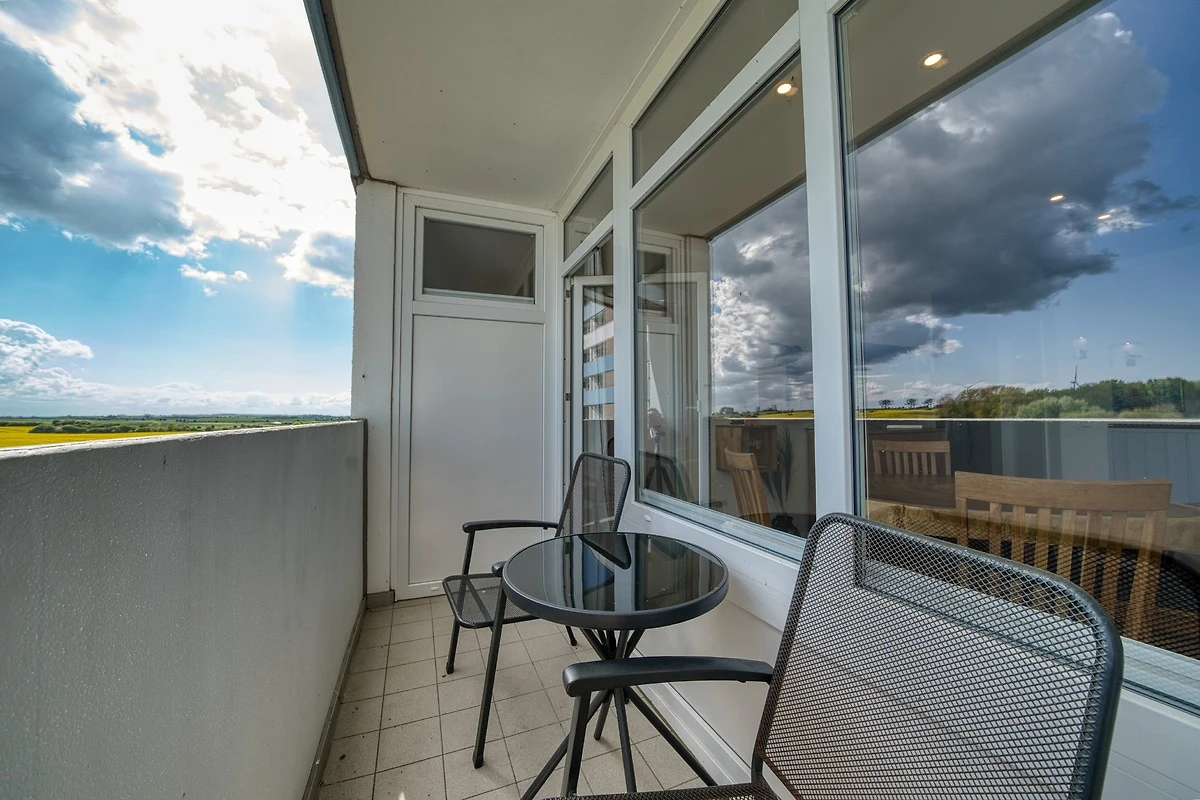 Die Wohnung liegt im Haus I Ferienpark, in der 5. Etage, mit Balkon zur Südseite, der viel Sonne und einen herrlichen Blick auf die Grünanlagen bietet.