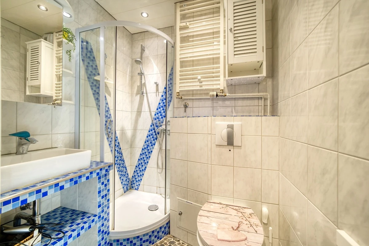 Die Wohnung bietet Schlafzimmer mit Doppelbett und TV, Kinderzimmer mit Etagenbett und TV, Wohn-Essbereich mit Ecksofa, Flachbild-TV, DAB-Radio und Esstisch. Voll ausgestattete Küche mit Ceranherd, Mikrowelle, Geschirrspüler, Kühlschrank, Kaffeemaschine und Wasserkocher. Modernes Bad mit Dusche und Handtuchtrockner. Bonus: WLAN, Kinderhochstuhl, Kinderreisebett, Bollerwagen, kostenfreier Saisonstrandkorb. Nichtraucher, keine Haustiere, Fahrstuhl, Fahrradräume, Parkplatz, ca. 300 m zum Strand.