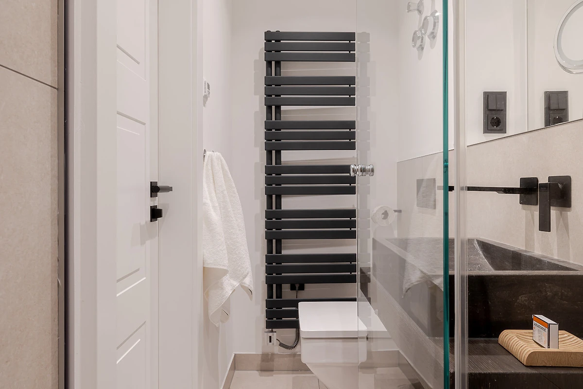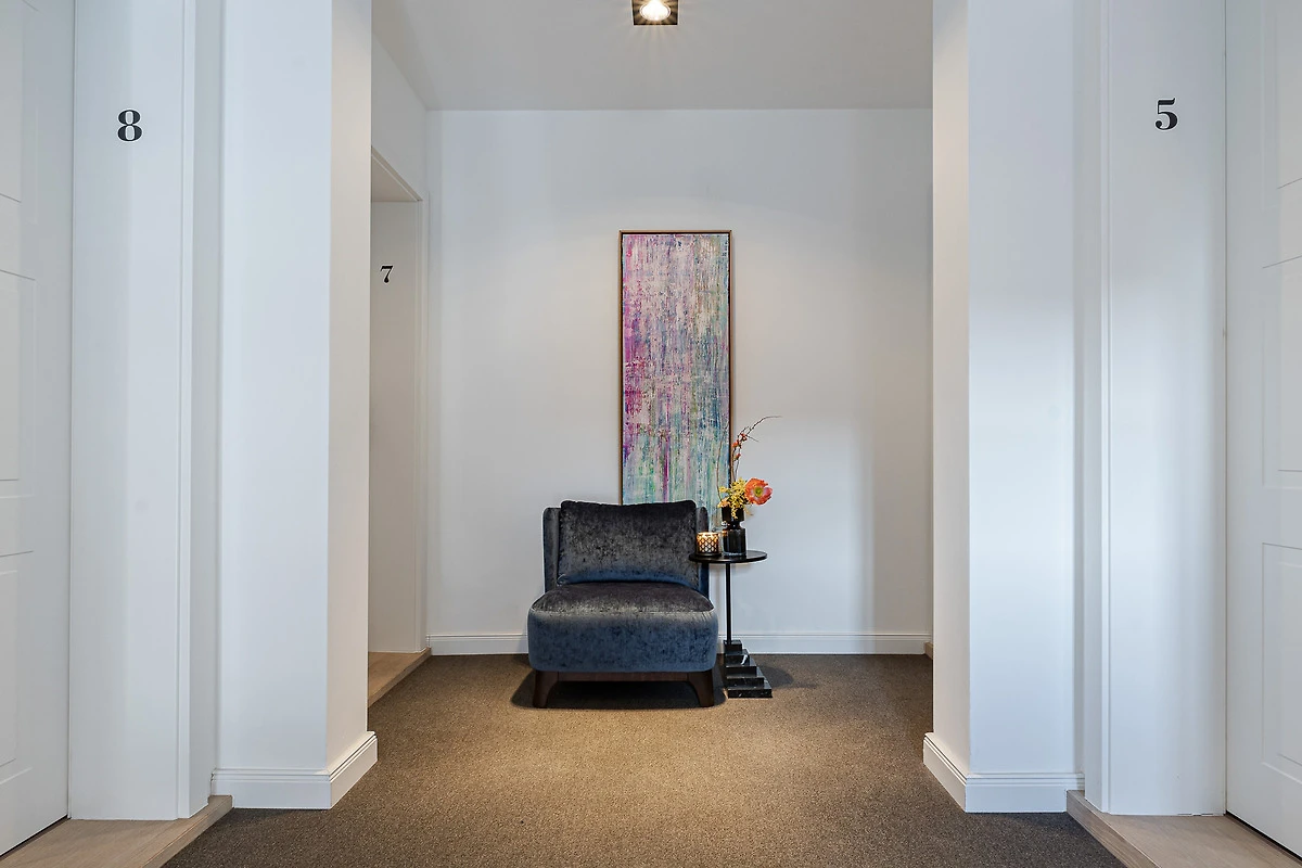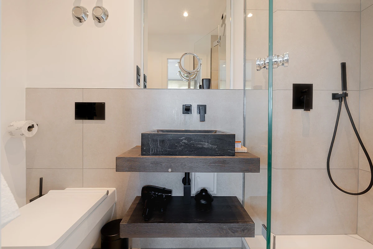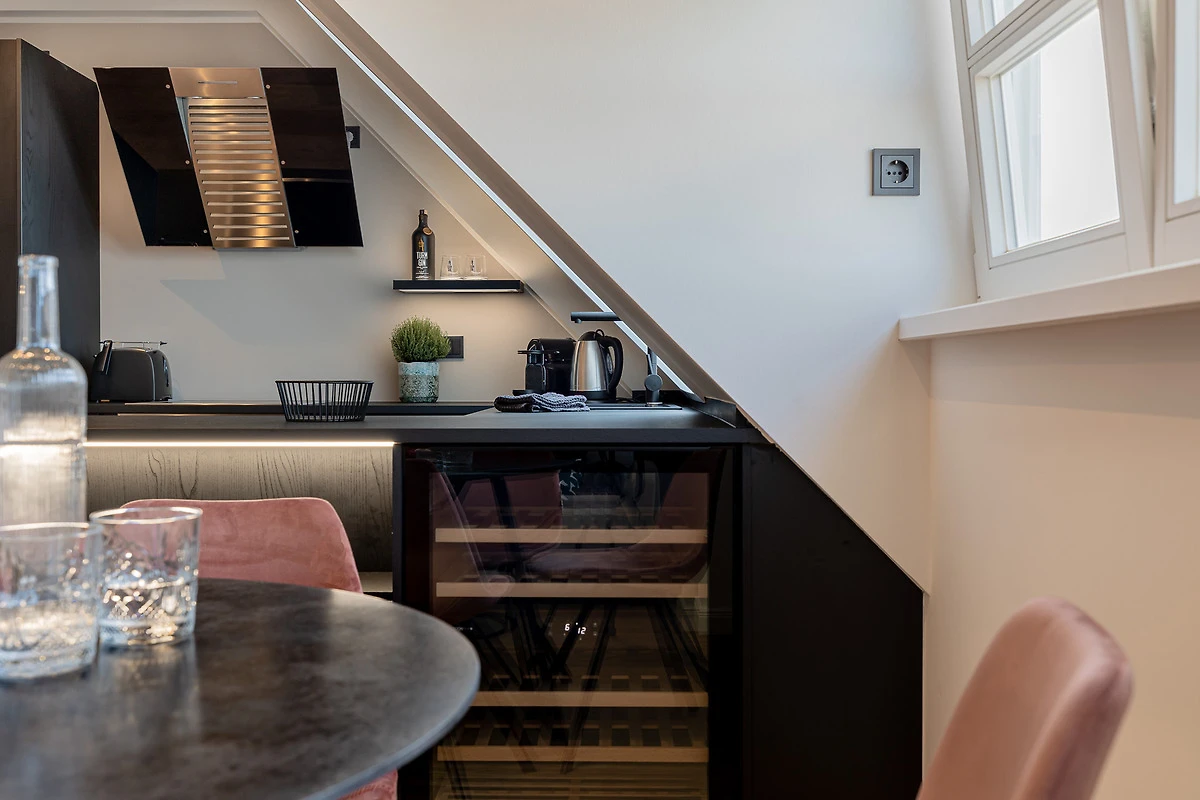 Das Apartment überzeugt mit hohen Decken, lichtdurchfluteten Räumen und moderner Einrichtung. Beim Betreten gelangen Sie in den offenen Wohn- und Essbereich inklusive Schlafsofa. Im Schlafzimmer erwartet Sie ein exklusives COCO-MAT Boxspringbett für besten Schlafkomfort. Die Küche ist mit Gaggenau- und Miele-Geräten ausgestattet – so macht Kochen im Urlaub gleich doppelt Freude. Bei Ankunft erhalten Sie ein Starterpaket für Bad und Küche.