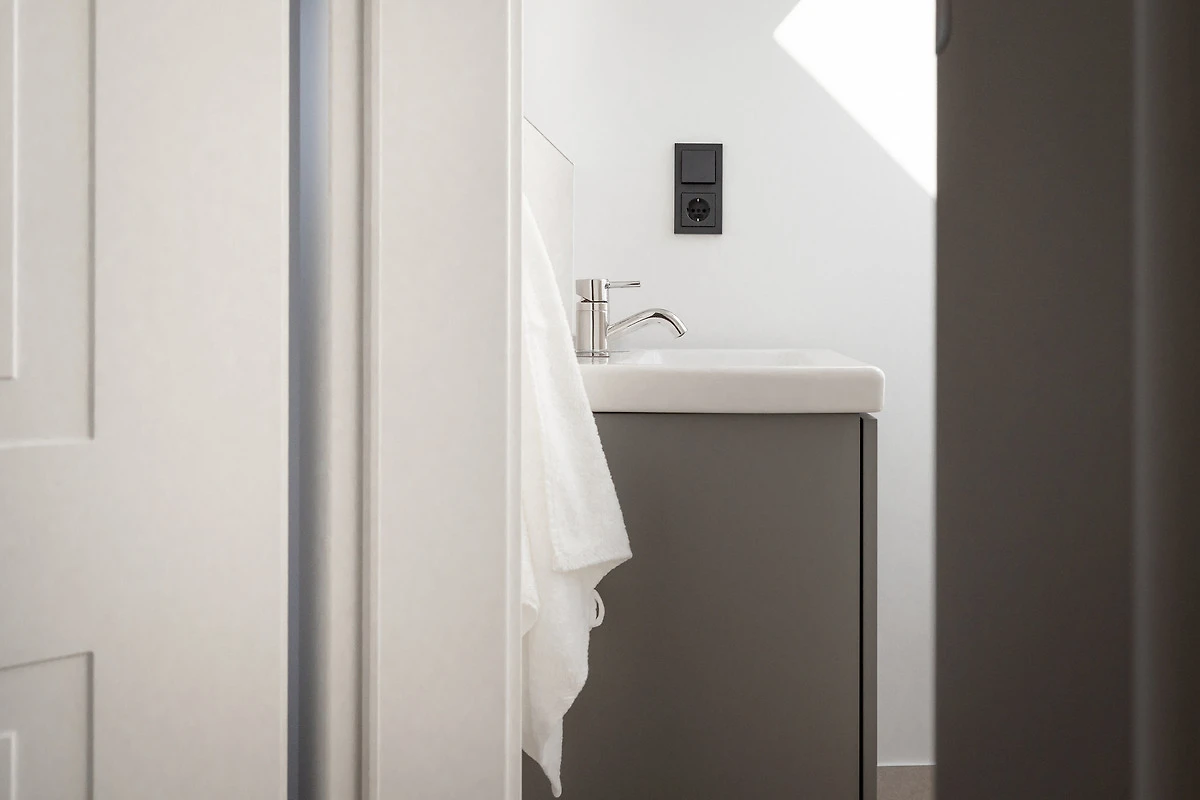 Als Gast nutzen Sie kostenfrei den Gemeinschaftsbereich mit Sauna, Ruheliegen und Fitnessraum (Peloton®-Bike, Crosstrainer, Spiegelwand). Zudem stehen Ihnen Waschraum, Fahrradabstellplätze und kostenlose Parkplätze zur Verfügung. Zwei E-Auto-Ladestationen können je nach Verfügbarkeit kostenpflichtig genutzt werden.