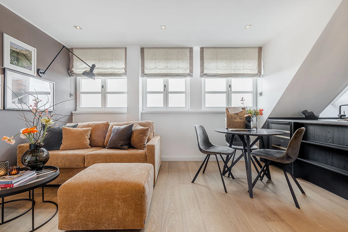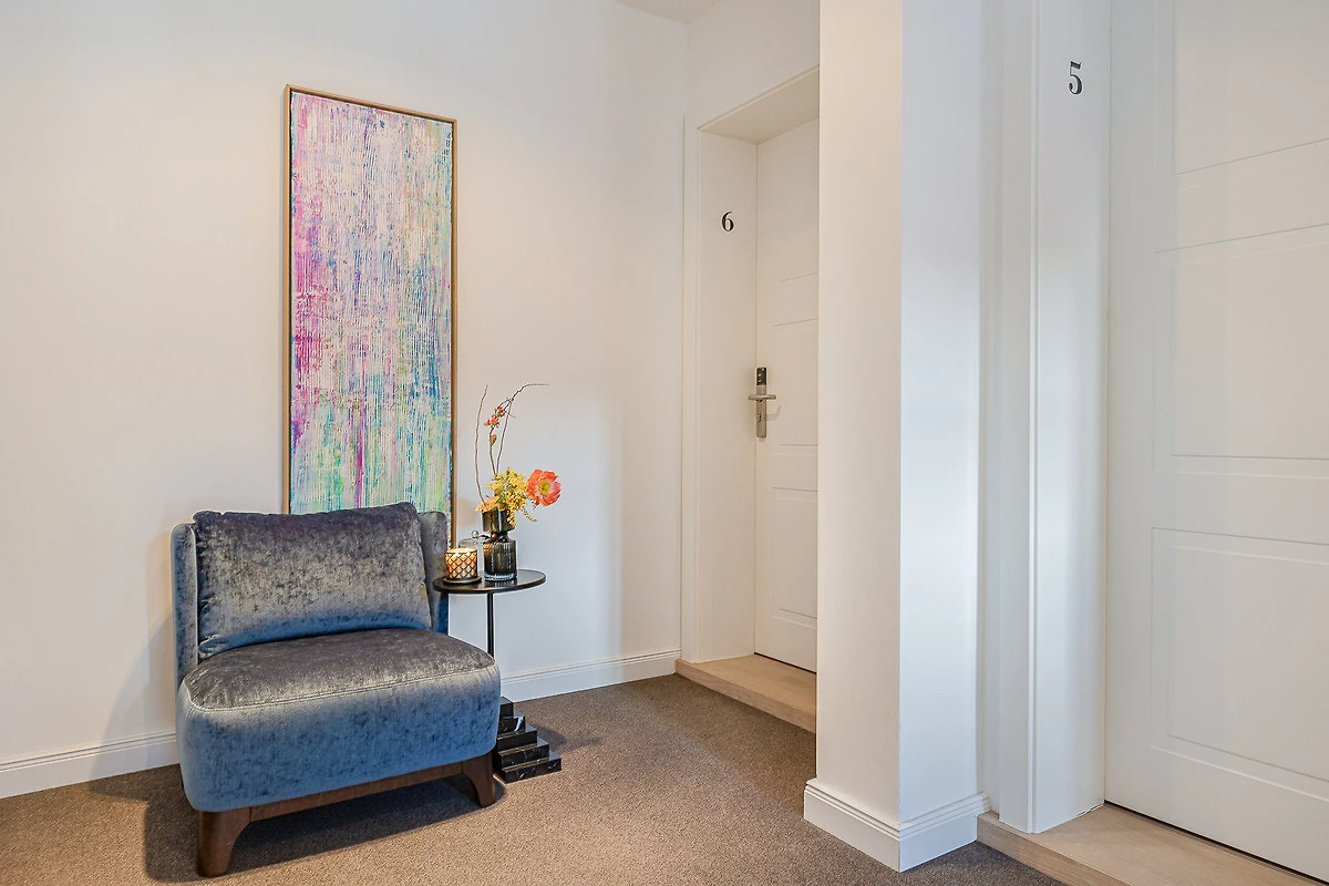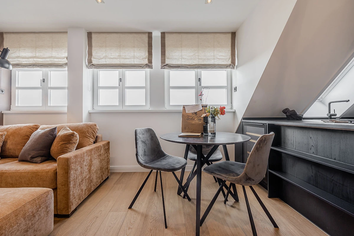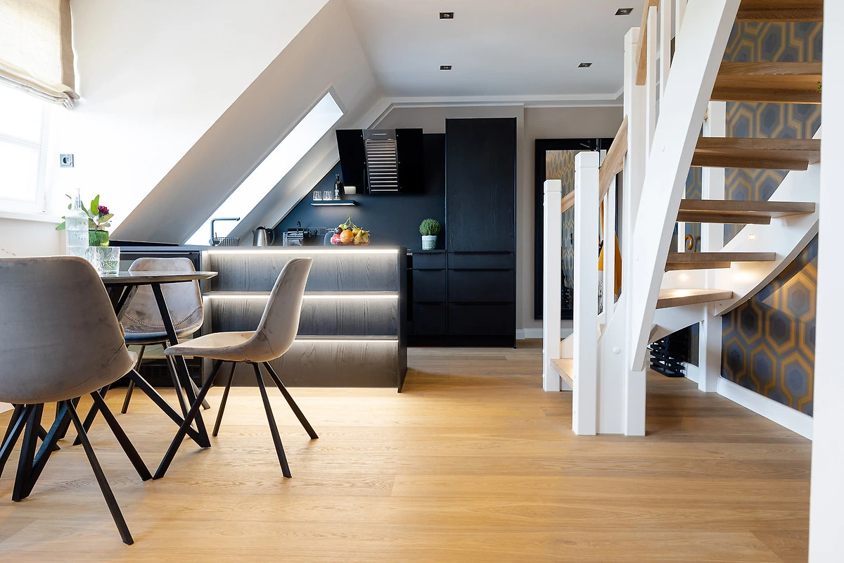 Die 60 Quadratmeter grosse, frisch renovierte Maisonettewohnung liegt im Dachgeschoss des historischen Backsteinhauses Living Lorens No. 19 und verbindet strandnahe Lage mit urbaner Leichtigkeit.