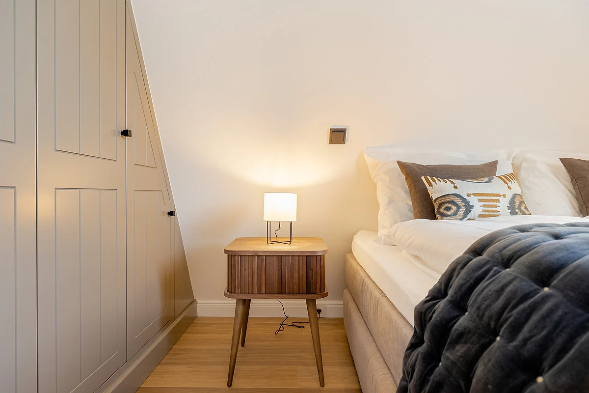 Auf zwei Etagen bietet die Drei Zimmer Wohnung Platz für bis zu vier Personen und empfängt Sie mit hohen, lichtdurchfluteten Räumen, in denen sich Altbaucharme und moderne Gestaltung harmonisch verbinden. Hier fühlt sich Urlaub sofort nach Ankommen an.