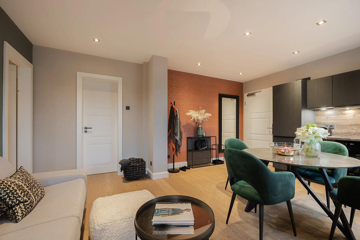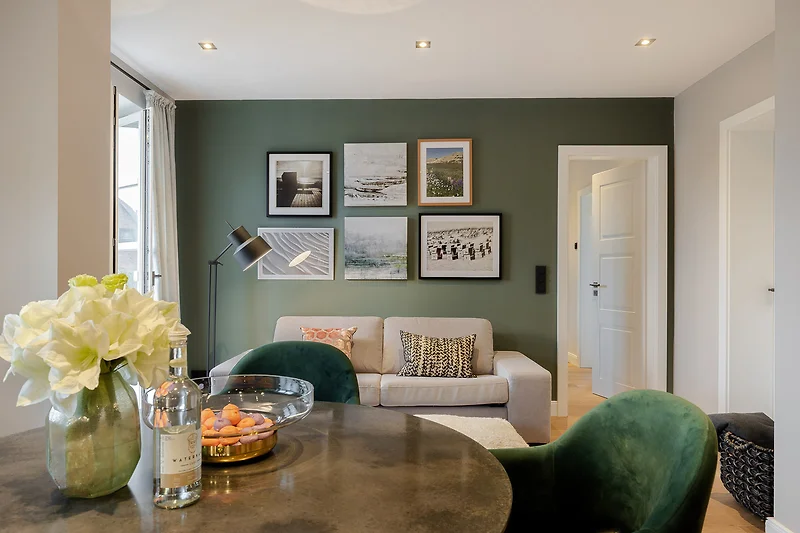 Schon beim Ankommen empfängt Sie eine helle, grosszügige Atmosphäre: hohe Decken, viel Tageslicht und eine modern-elegante Einrichtung schaffen ein echtes Wohlfühlambiente. Der offene Wohn- und Essbereich ist das Herz der Wohnung. Ein komfortables Schlafsofa ergänzt den Raum und bietet bei Bedarf eine zusätzliche Schlafgelegenheit.