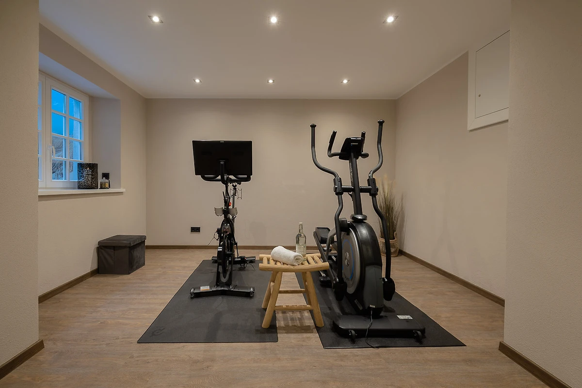 Zusätzlichen Komfort bietet der gemeinschaftliche Kellerbereich mit Waschraum, kleinem Sauna- und Fitnessbereich inklusive Liegen, Spiegelwand, Crosstrainer und Peloton Bike. Kostenfreie Parkplätze stehen direkt am Haus zur Verfügung, E-Ladestationen können je nach Verfügbarkeit kostenpflichtig genutzt werden.