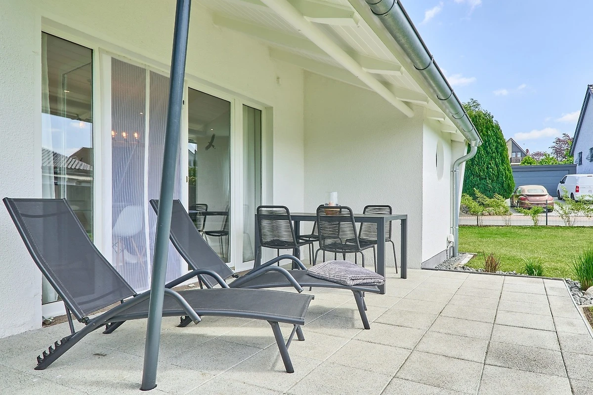 Es erwartet Sie ein sehr lichtdurchflutetes sowie ansprechendes, mit viel Liebe eingerichtetes Ferienhaus mit 80m² Wohlfühlfläche. Das Grundstück ist eingezäunt und hat eine Fläche von ca. 300m². Freundliche Sonnenterrasse 2 Liegen und Gartenmöbeln.