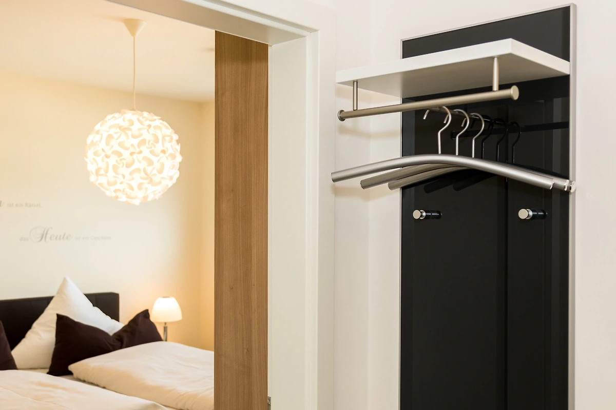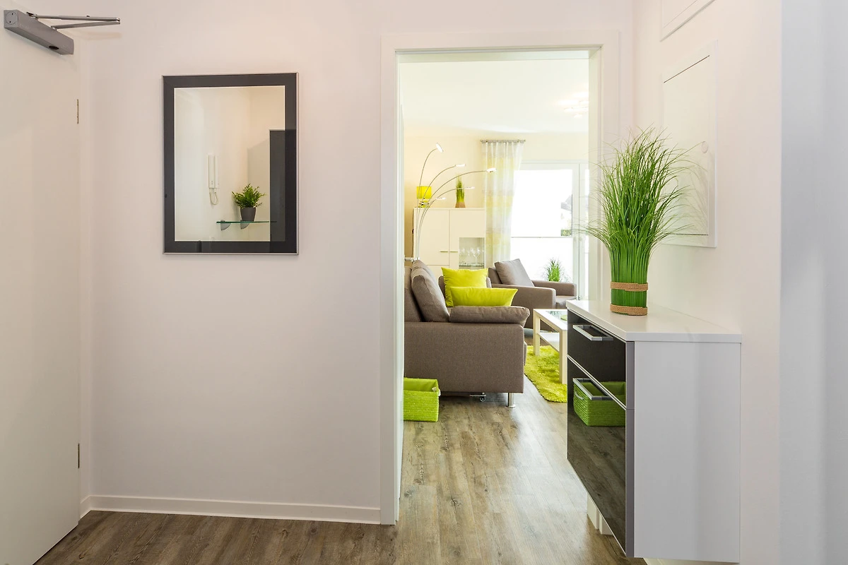 2-Zimmer-Ferienwohnung, ca. 54 m², für bis zu 3 Personen, mit Balkon, Duschbad, Waschmaschine im Bad, WLAN, PKW-Stellplatz und Fahrstuhl.