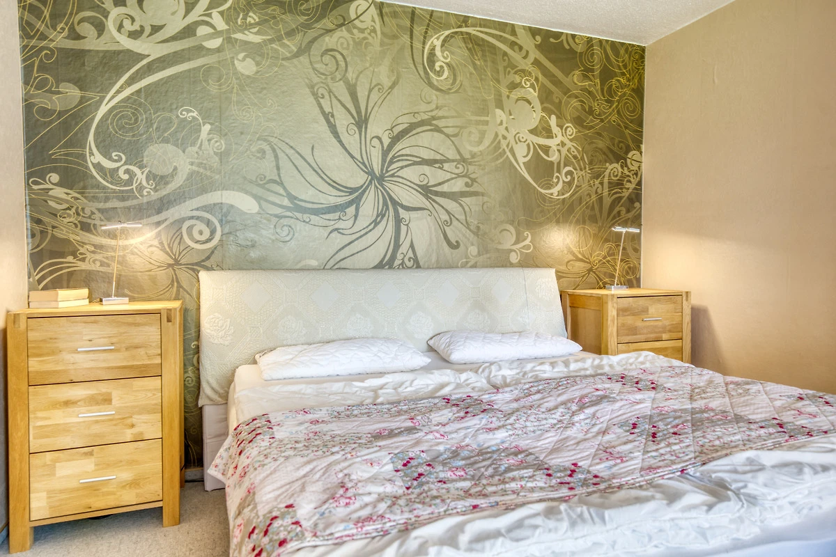 Elternschlafbereich mit Doppelbett, separates Kinderzimmer, Wohnbereich mit Flachbild-TV, Küchenzeile mit Mikrowelle, Mini-Backofen, Geschirrspüler, Kühlschrank und Filterkaffeemaschine, Bad mit Dusche/WC und Balkon. Fahrradunterstellmöglichkeit, Parkplatz inklusive. Nichtraucherwohnung, kein WLAN, Haustiere nicht gestattet. Ca. 300 m bis zum Strand, Nähe Aktiv-Hus mit Schwimmbad, Sauna, Wellness und Gastronomie.