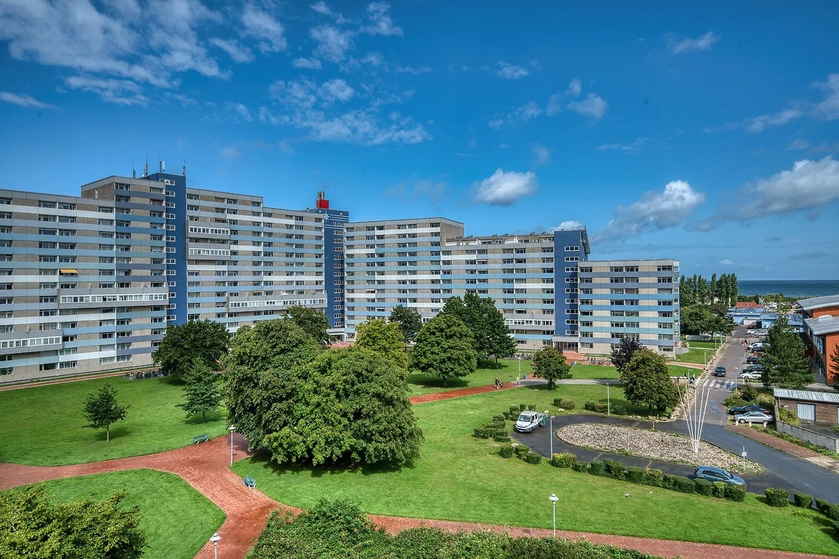 Diese gepflegte Ferienwohnung in der 6. Etage des Hauses Q im Ferienpark Heiligenhafen bietet auf 45 m² Wohnfläche einen idealen Rückzugsort für bis zu 4 Personen. Der Balkon mit Blick über den Innenhof in Richtung Ostsee lädt zu entspannten Momenten mit frischer Meeresluft ein.