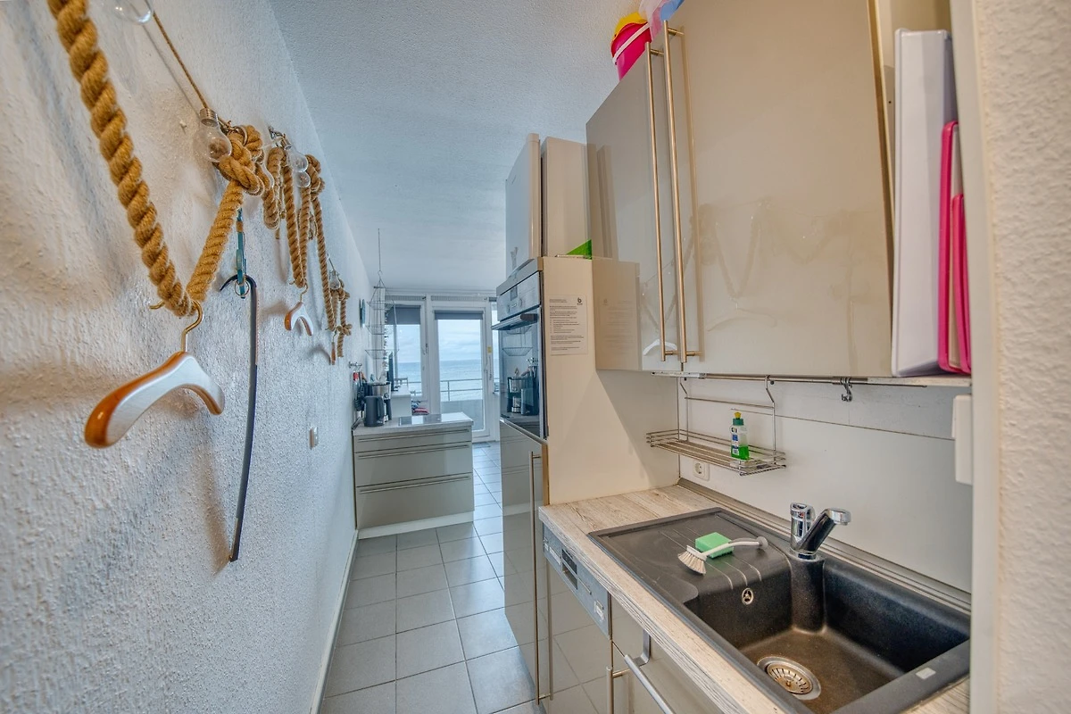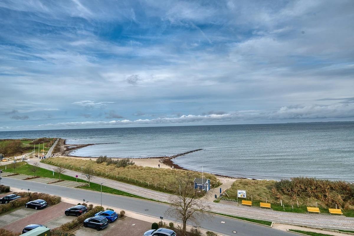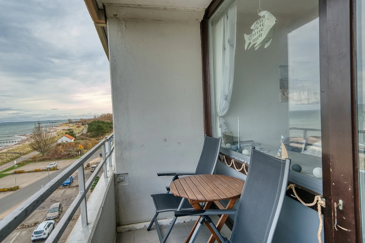 Willkommen in dieser gemütlichen 30 m² grossen Ferienwohnung im 5. Stock des Appartementhauses Steinwarder 35 in Heiligenhafen. Vom Balkon geniessen Sie einen traumhaften Ostseeblick – ideal für Sonnenaufgang und Sonnenuntergang.