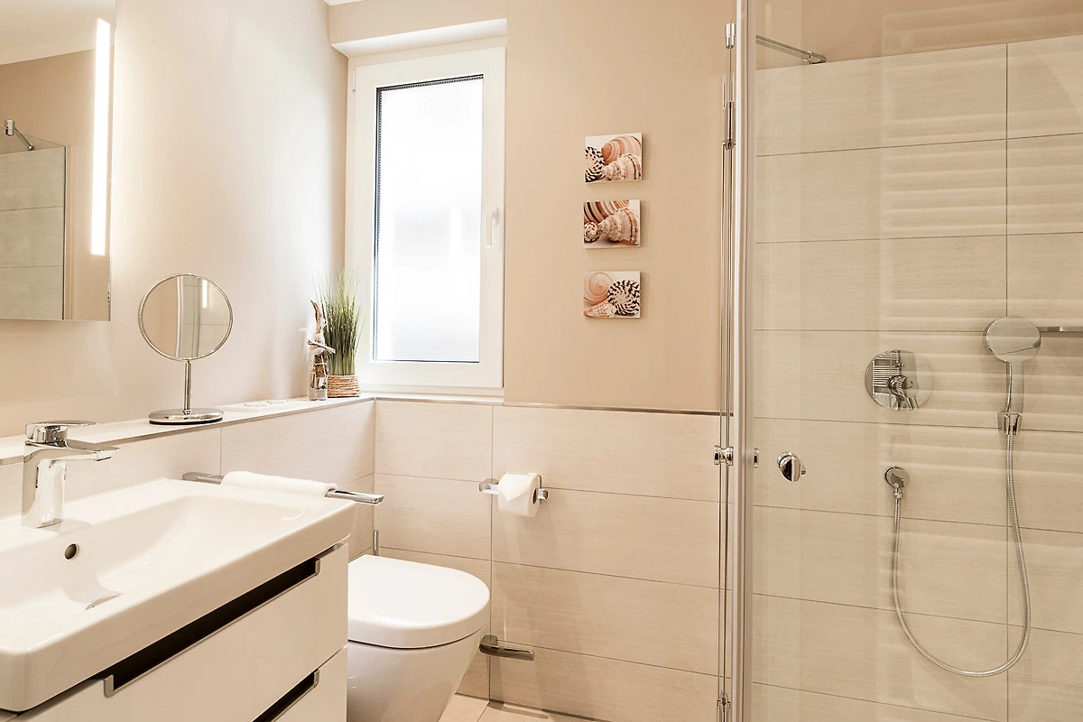 Diese Ferienwohnung, welche mit viel Liebe ausgestattet wurde, lässt Sie Ihren Urlaub geniessen. Besonders für Allergiker ist diese Wohnung gut geeignet, da sie eine reine Nichtraucher-Ferienwohnung ist und Haustiere nicht erlaubt sind. Ein Kinderreisebett mit Matratze und ein Hochstuhl, WLAN, ein Strandkorb gegenüber am Strand ( saisonbedingt 15.05. – 15.09. ) stehen Ihnen in dieser Ferienwohnung kostenlos zur Verfügung. Aussenrollläden, Fussbodenheizung, bodengleiche Dusche, Meerblick aus allen Räumen. Für Ihre Fahrräder ist Platz im grossen Fahrradkeller im Hause. Eine Waschmaschine und ein Wäschetrockner befinden sich im Gemeinschaftskeller und können von allen Bewohnern kostenfrei benutzt werden; der Schlüssel ist beim Vermietbüro erhältlich.