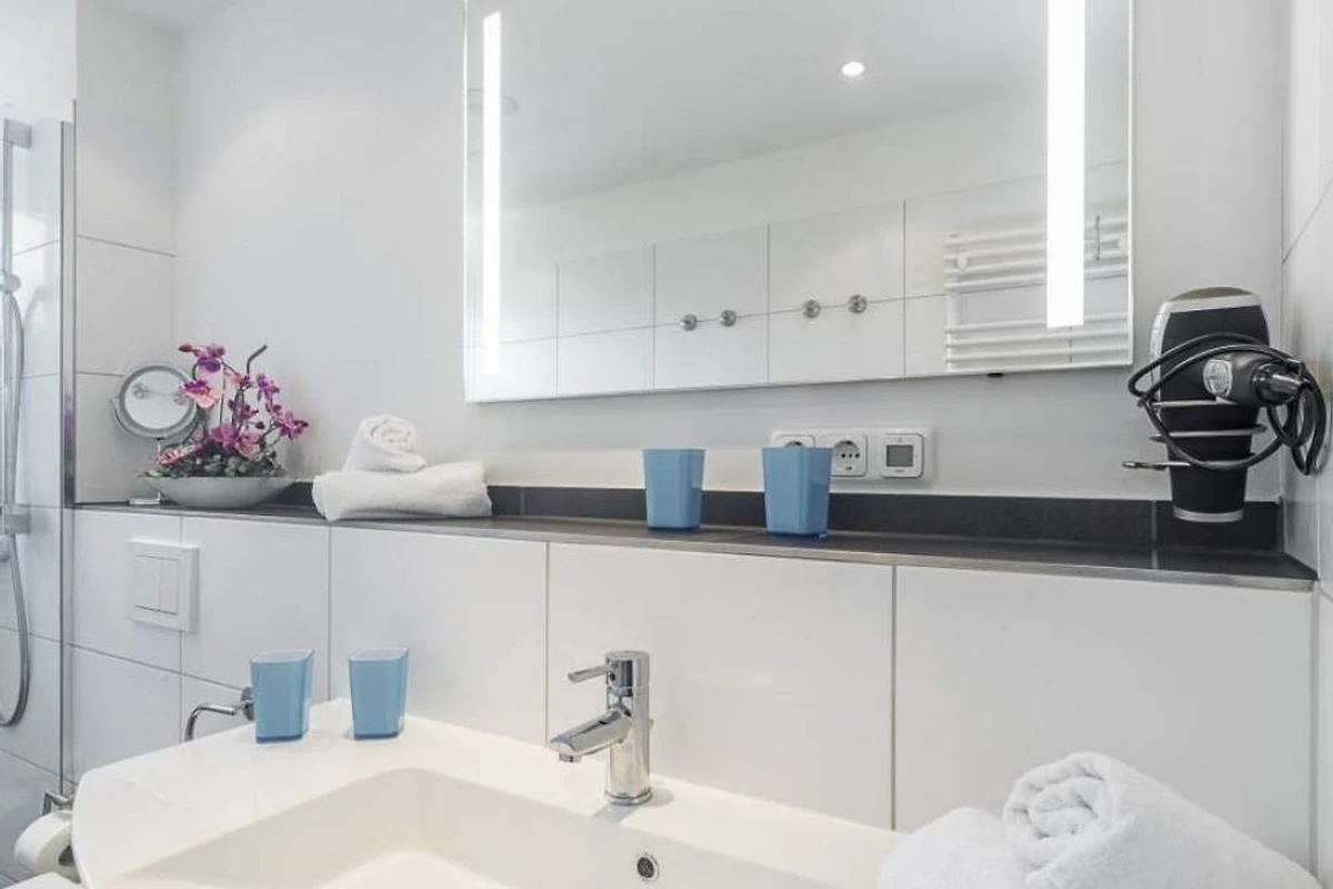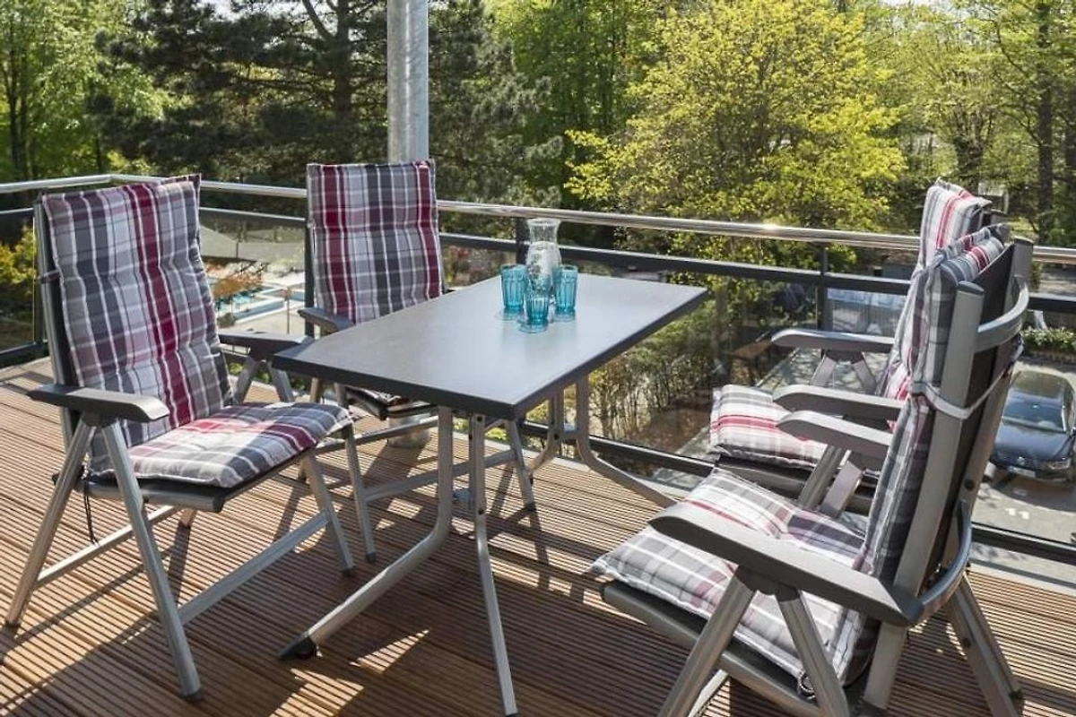 Der Balkon lädt zum Entspannen ein und bietet einen Teilmeerblick. Für den Komfort unserer Gäste stehen eine Waschmaschine und ein Trockner zur Verfügung. Ein Parkplatz ist ebenfalls vorhanden.