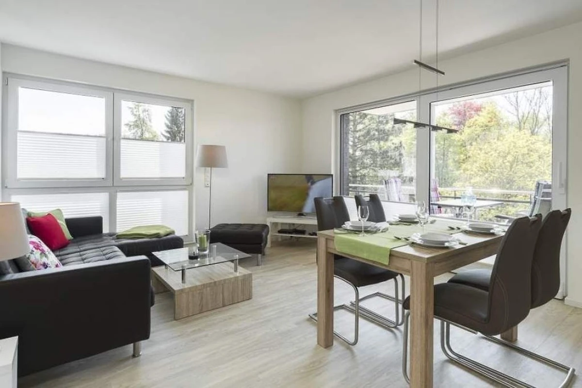 3-Zimmer-Ferienwohnung, ca. 60m² für bis zu 4 Personen, mit Duschbad, Teilmeerblick, Kfz-Aussenstellplatz.