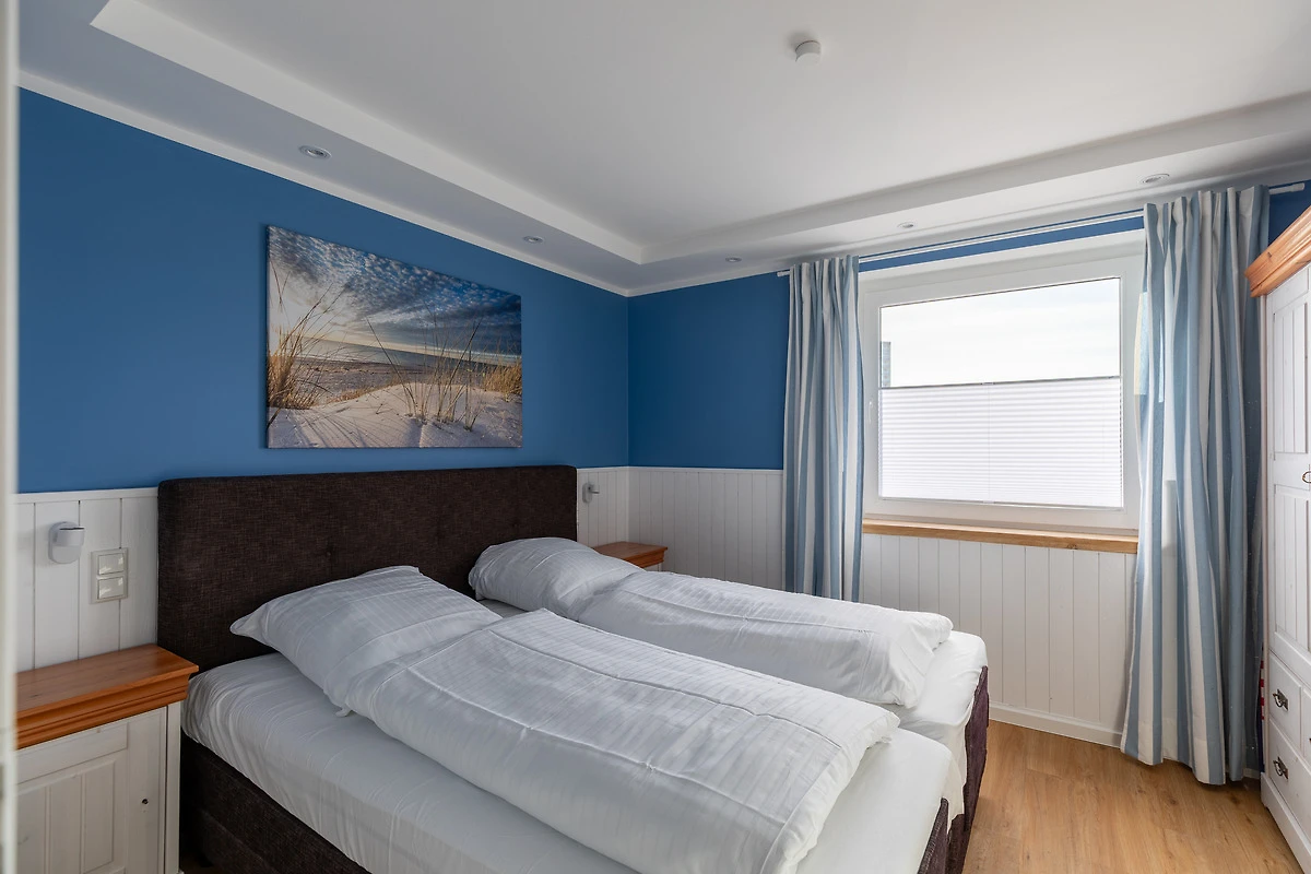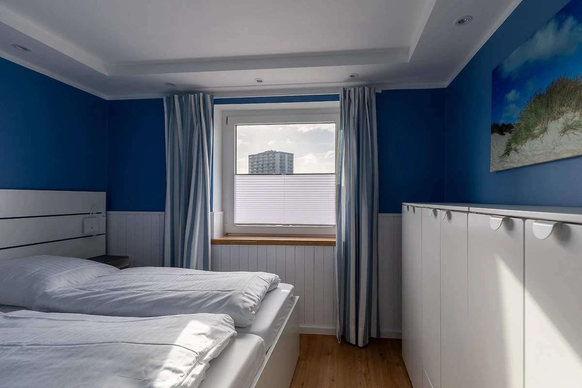 In Januar 2026 modernisierte 3 Zimmer Wohnung im 2. Obergeschoss, direkt am Strand, für bis zu 4 Personen, Schlafzimmer 1 mit Doppelbett (Boxspringbett), Kleiderschrank und TV, Schlafzimmer 2 mit Doppelbett, Wohnzimmer mit moderner Küchenzeile (Backofen, Cerankochfeld, Geschirrspüler, Kaffeemaschine, Wasserkocher, Toaster), gemütlicher Sitzecke, Essplatz, TV, Bad mit Dusche und WC, verglaster Balkon mit Sicht auf die Nordsee, Fahrstuhl im Haus, reservierter PKW Stellplatz hinter dem Haus (die Zufahrt zu den Parkplätzen erfolgt über die Strasse "Muschelgrund" in 27476 Cuxhaven).